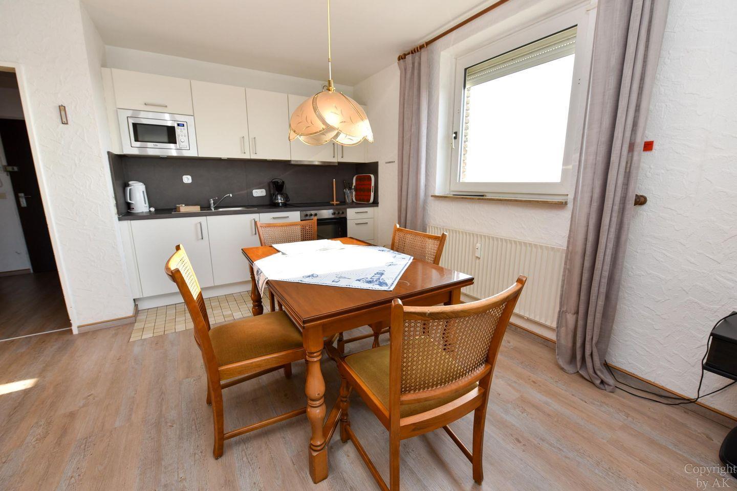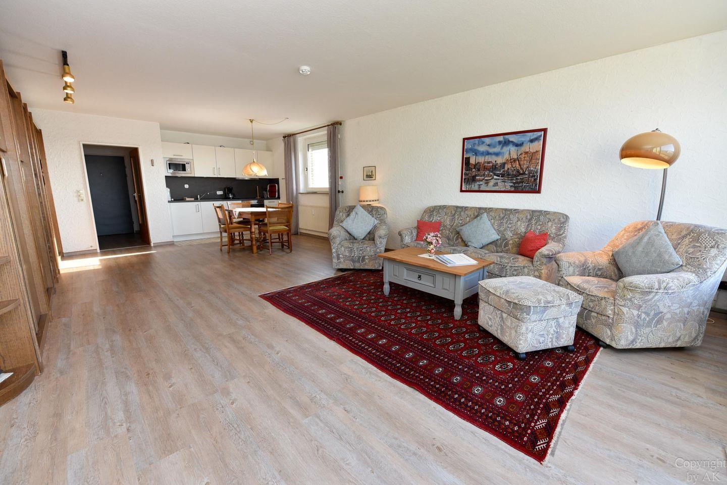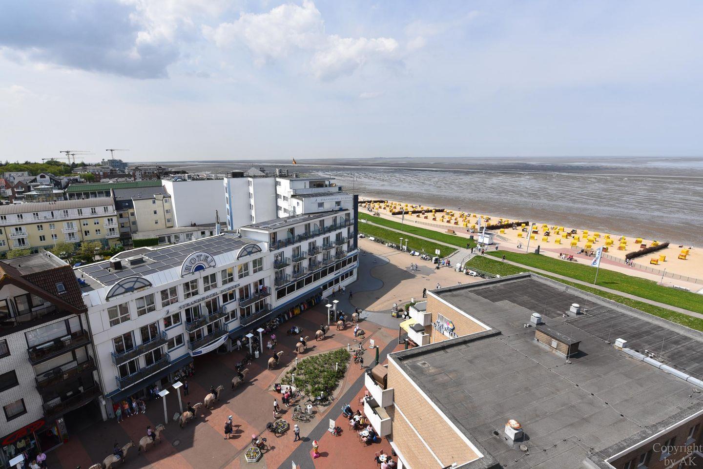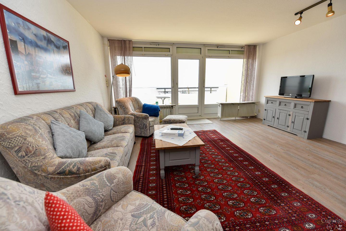 Die Eckwohnung Nr. 105 im Haus Panorama liegt in der 8. Etage und bietet einen malerischen Seeblick in Richtung der Insel Neuwerk und den Sonnenuntergang.