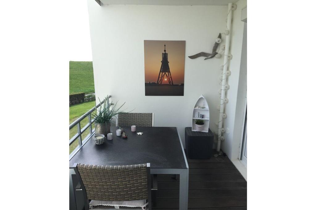 Charmante Ferienwohnung mit Balkon und Seeblick direkt hinter dem Deich in Cuxhaven, nahe Strand und Kugelbake.