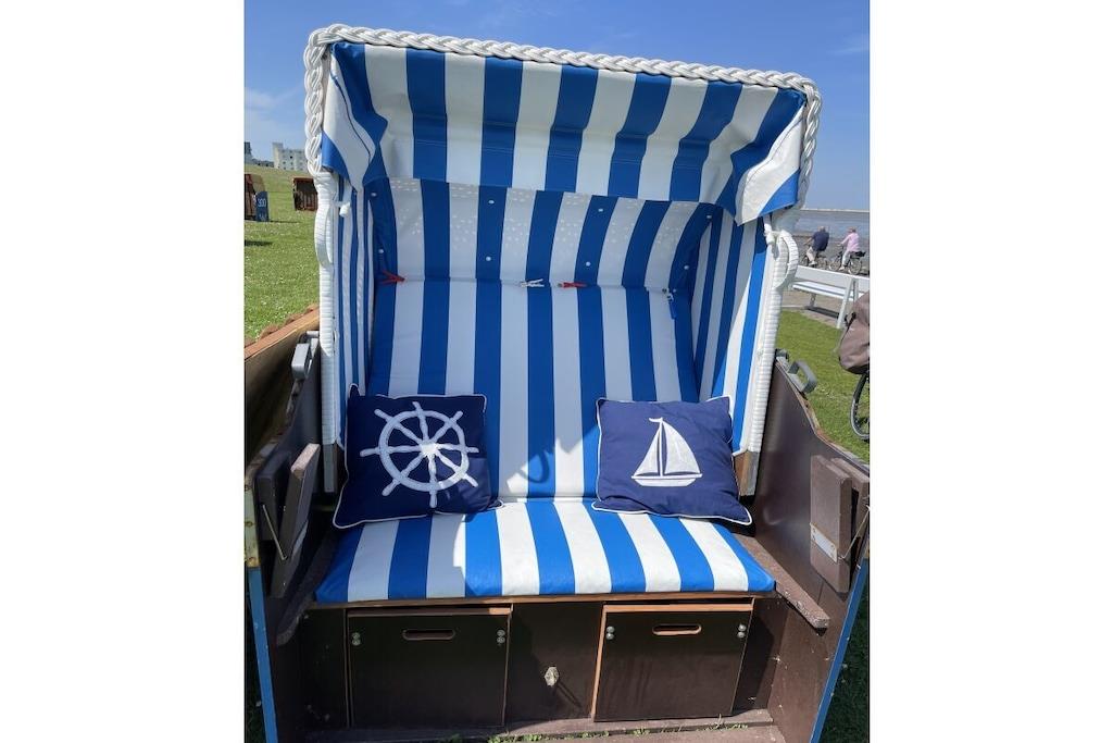 Unsere schöne Ferienwohnung im 2. Stock mit Seesicht im Haus Grimmershörn in 1. Reihe direkt hinter dem Deich. Der Blick auf die Kugelbake und über den Deich, auf den Weltschifffahrtsweg lassen keine Wünsche offen, ausgewogene Spaziergänge, viele Ausflugsmöglichkeiten bietet Cuxhaven. Der Sandstrand und die Kugelbake sowie der Kurpark sind in wenigen Minuten fußläufig zu erreichen. Auch bieten viele Restaurants in unmittelbarer Nähe Zeit zum Entspannen und Schlemmen, Einkaufsmöglichkeiten, Ärzte und viele Ausflugsziele sind bequem mit dem Rad oder zu Fuß erreichbar. Ein Balkon mit Sitzmöbeln lädt zum Verweilen und genießen ein. Ein Strandkorb in 1. Reihe in direkter Lage ist für Sie reserviert, gegen eine Gebühr von 3,00EURO. Die Ferienwohnung bietet einen eigenen Stellplatz.