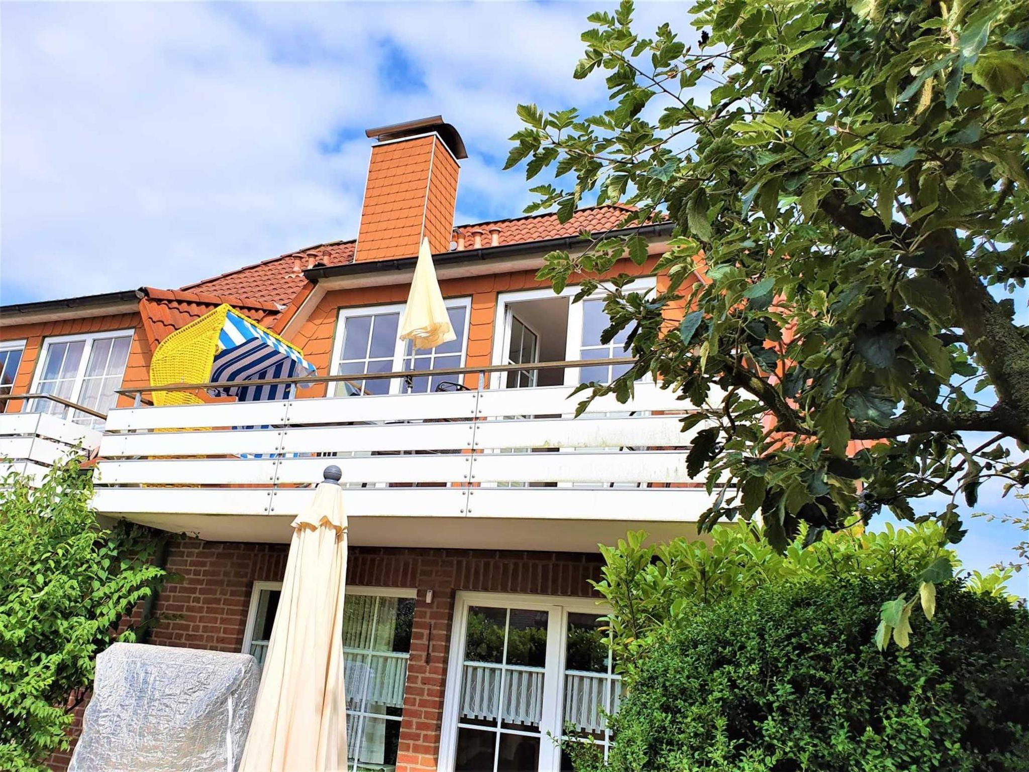 Die Wohnung liegt in der 1. Etage und wird durch einen Stellplatz für ihr Auto direkt vor dem Haus und einen Balkon in Südwestlage ergänzt, auf dem ein Strandkorb und eine Sitzgruppe (Tisch mit vier Sesseln) mit einem Sonnenschirm zum Verweilen einladen.