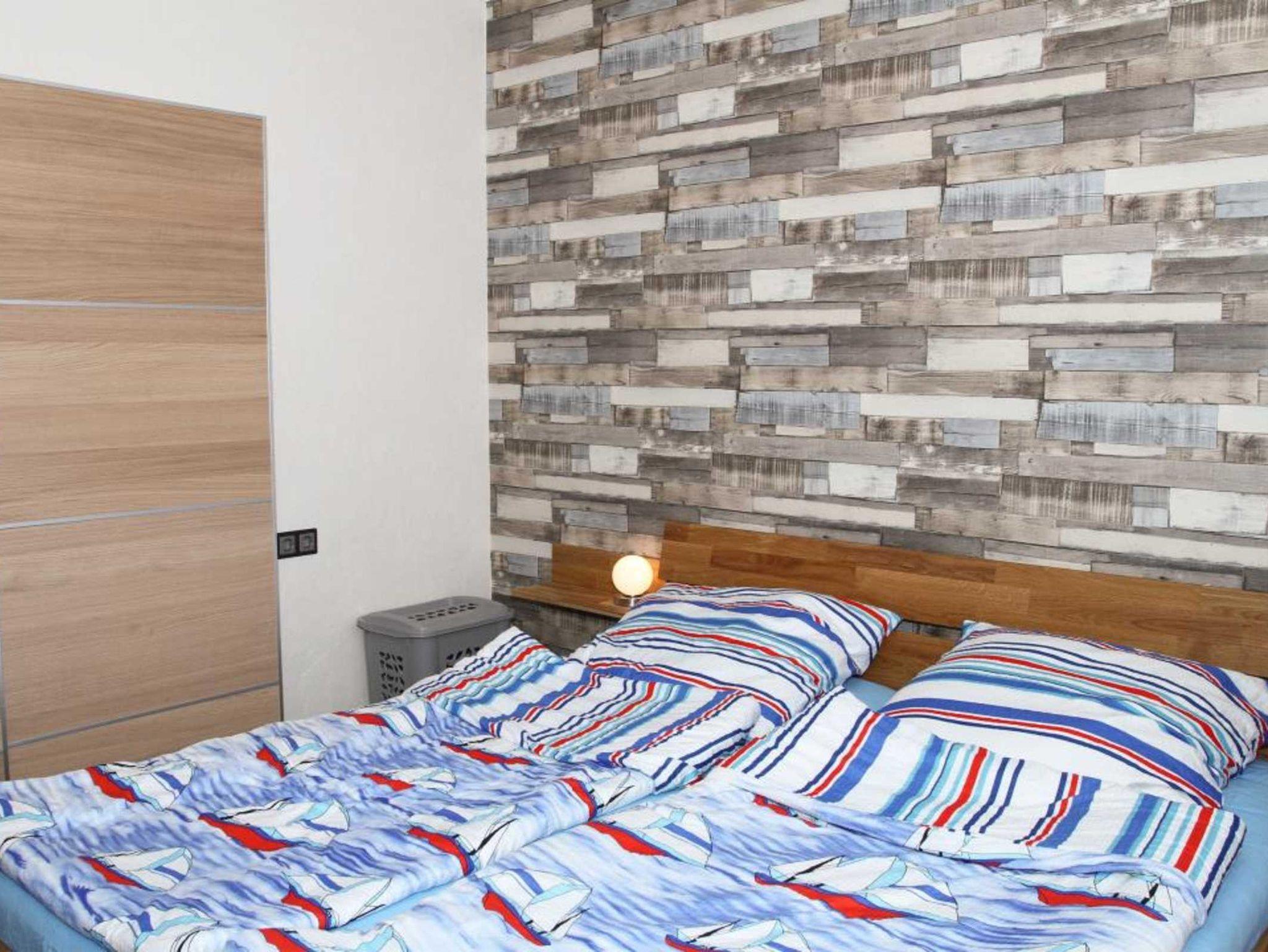 Der Wohnraum ist mit einer gemütlicher Schlafcouch, einem LED?TV (SAT) mit integriertem DVD-Player sowie einer kleinen DVD Auswahl und einem separatem Essplatz eingerichtet. Die voll ausgestattete Küche verfügt über einen Backofen, einen Herd, einen Kühlschrank mit Gefrierfach, eine Mikrowelle und eine kleine Geschirrspülmaschine. Der separate Schlafraum wird vom Wohnzimmer mittels eines offenen Durchganges erreicht. Beim Schlafzimmer haben wir uns für ein großes Doppelbett mit 180 cm x 200 cm Liegefläche entschieden. Ein Duschbad mit WC rundet die Wohnung ab.
