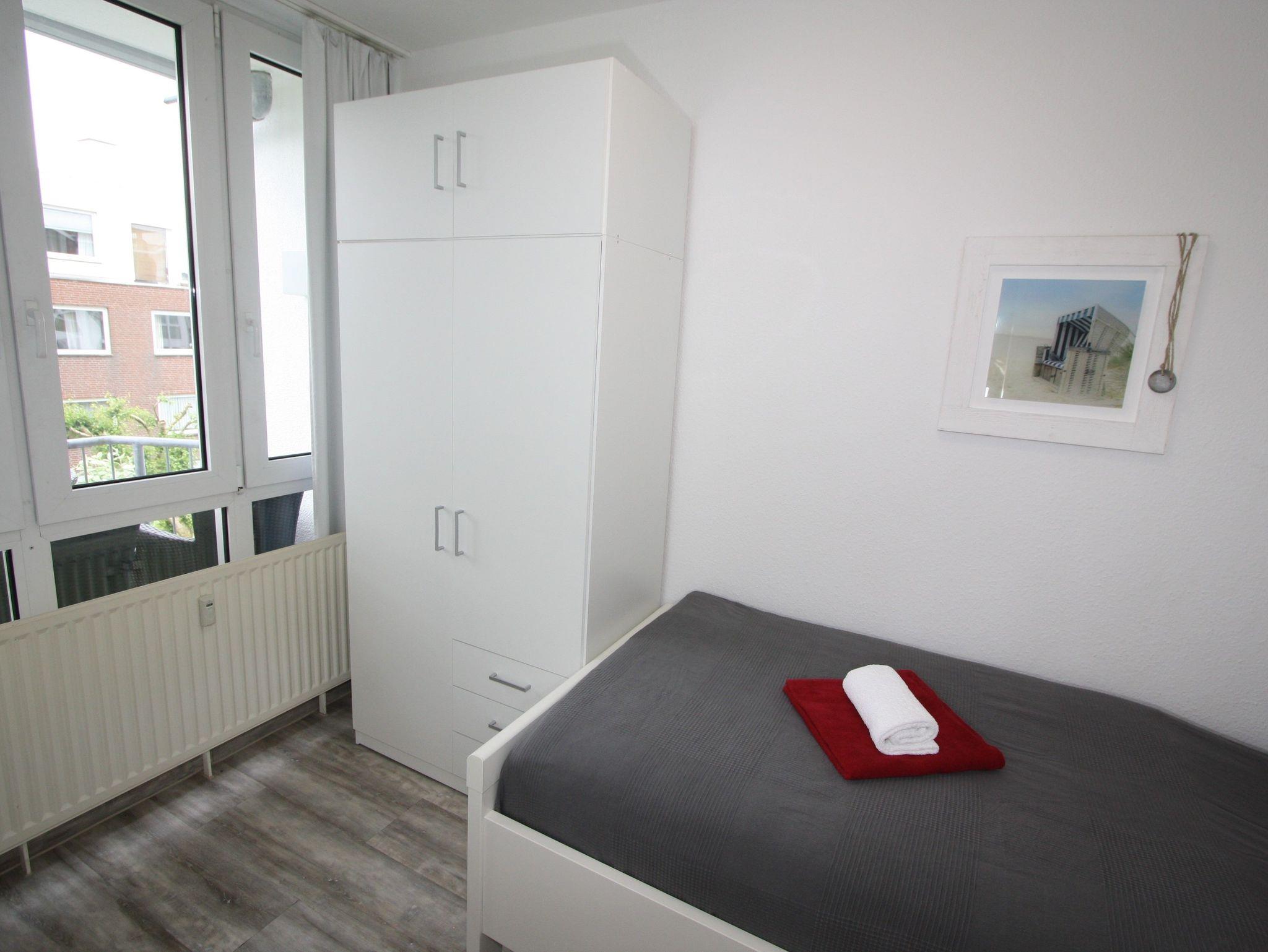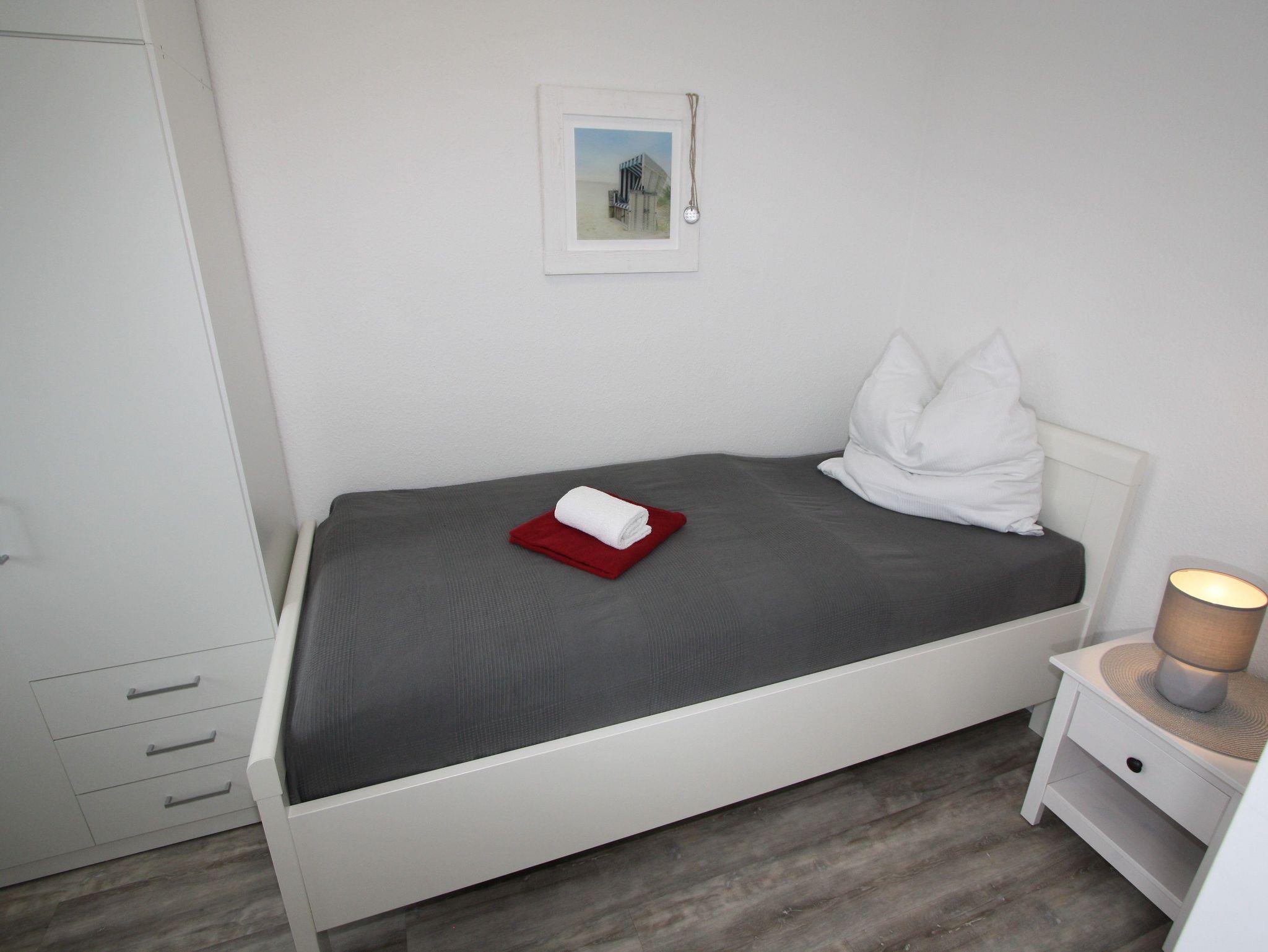 Ein separates Schlafzimmer mit einem Einzelbett und neuer Matratze bieten ungestörtes Schlafen in sehr ruhiger Lage.