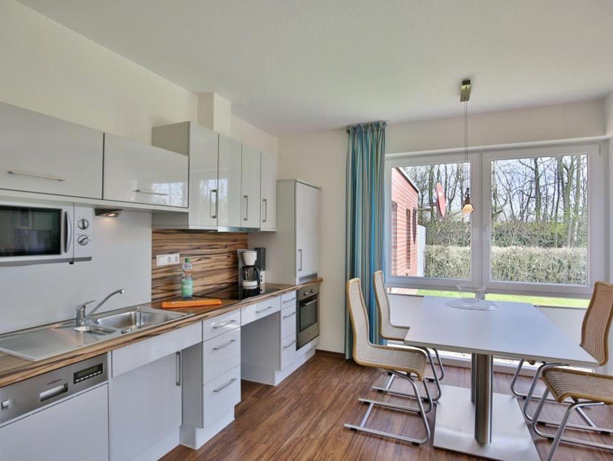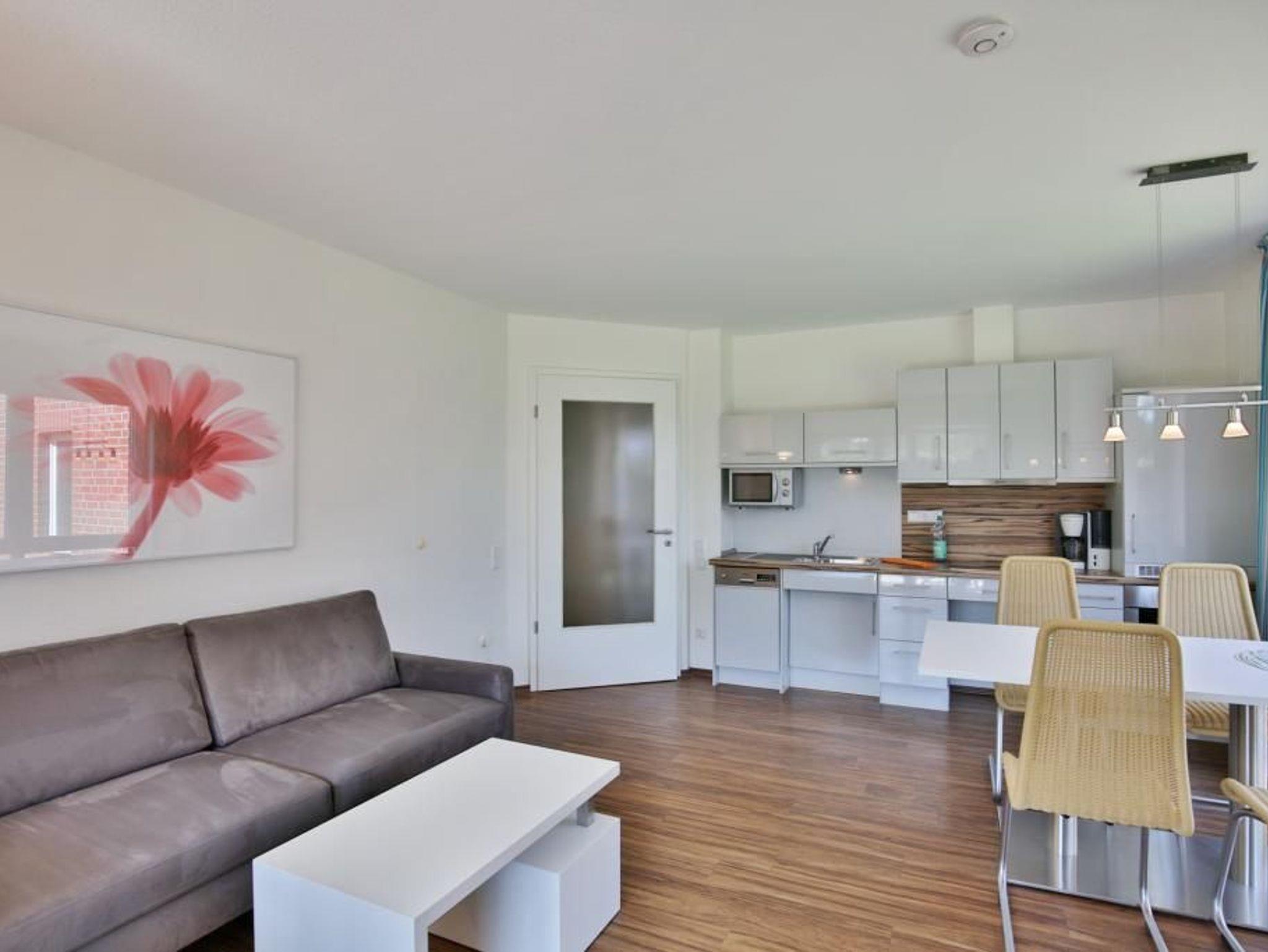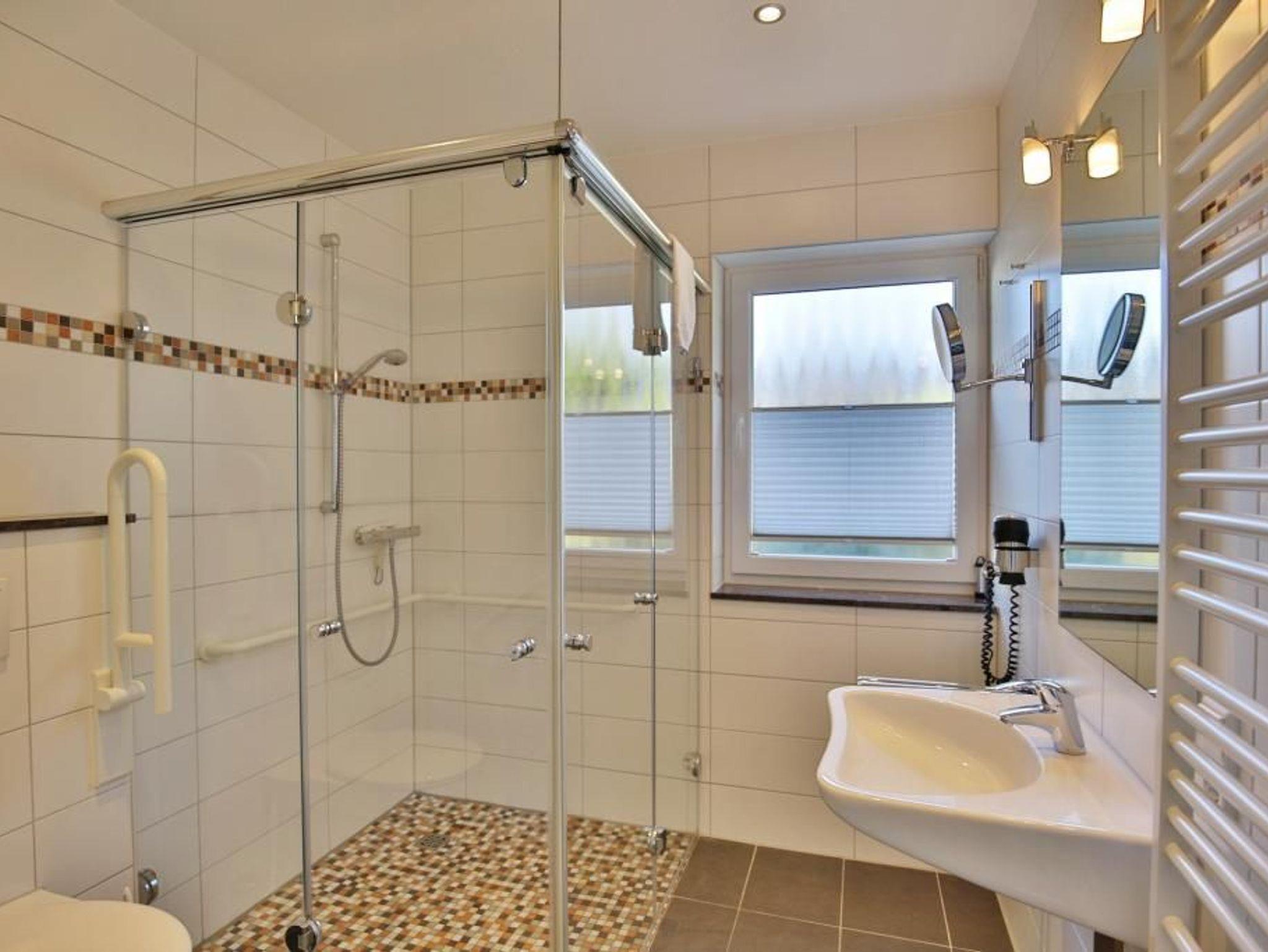 Sehr geschmackvolle und vollständig ausgestattete, barrierefreie Wohnung über 48m², parterre mit Terrasse (süd, mit Balkonmöbeln [&] Sonnenschirm, saisonabhängig), 1 Schlafzimmer mit zwei Einzelbetten, Wohnzimmer, SAT-TV, DVD, Stereo, kostenloses W-LAN Internet, komplette Küchenzeile (unterfahrbar) mit Geschirrspüler, Mikrowelle, Backofen, Gefrierfach, Du/Wc mit ebenerdiger Dusche, Rollladen, reservierter Pkw-Stellplatz vor dem Haus, Nichtraucher, keine Haustiere gestattet.