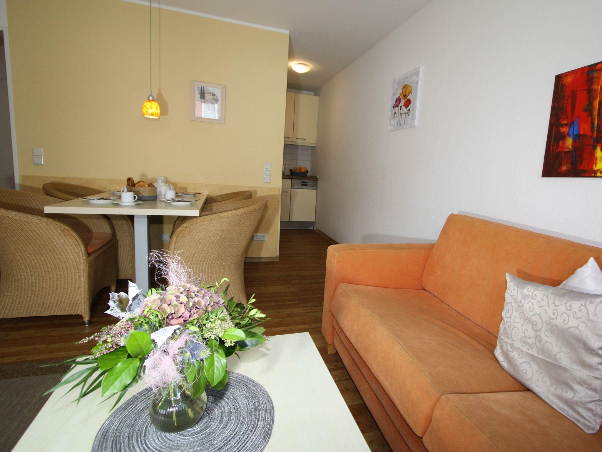 Sie wohnen in einem 2-Zimmer-Appartement für bis zu 4 Personen auf ca. 48 m² Wohnfläche. Schlafzimmer