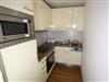 Separater, voll ausgestatteter Küchenbereich mit Herd (Ceran-Kochfeld), Mikrowelle, Kühlschrank,