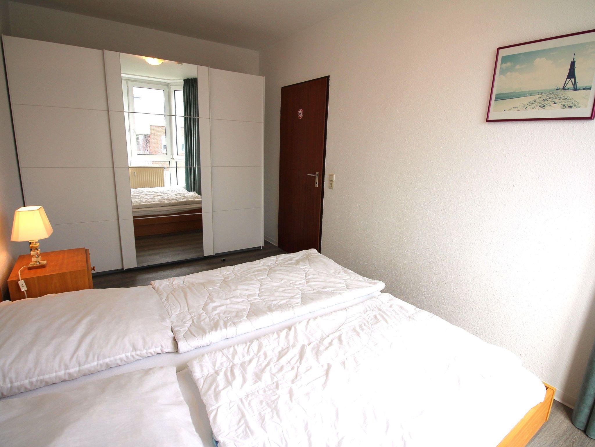 Das Schlafzimmer ist mit einem Doppelbett (180 x 200 cm, durchgängige Matratze) ausgestattet und verspricht erholsame Nächte. Der helle Wohn- und Schlafbereich lädt mit einer bequemen Bettcouch und einer offenen Schlafnische mit Einzelbett zum Entspannen ein.