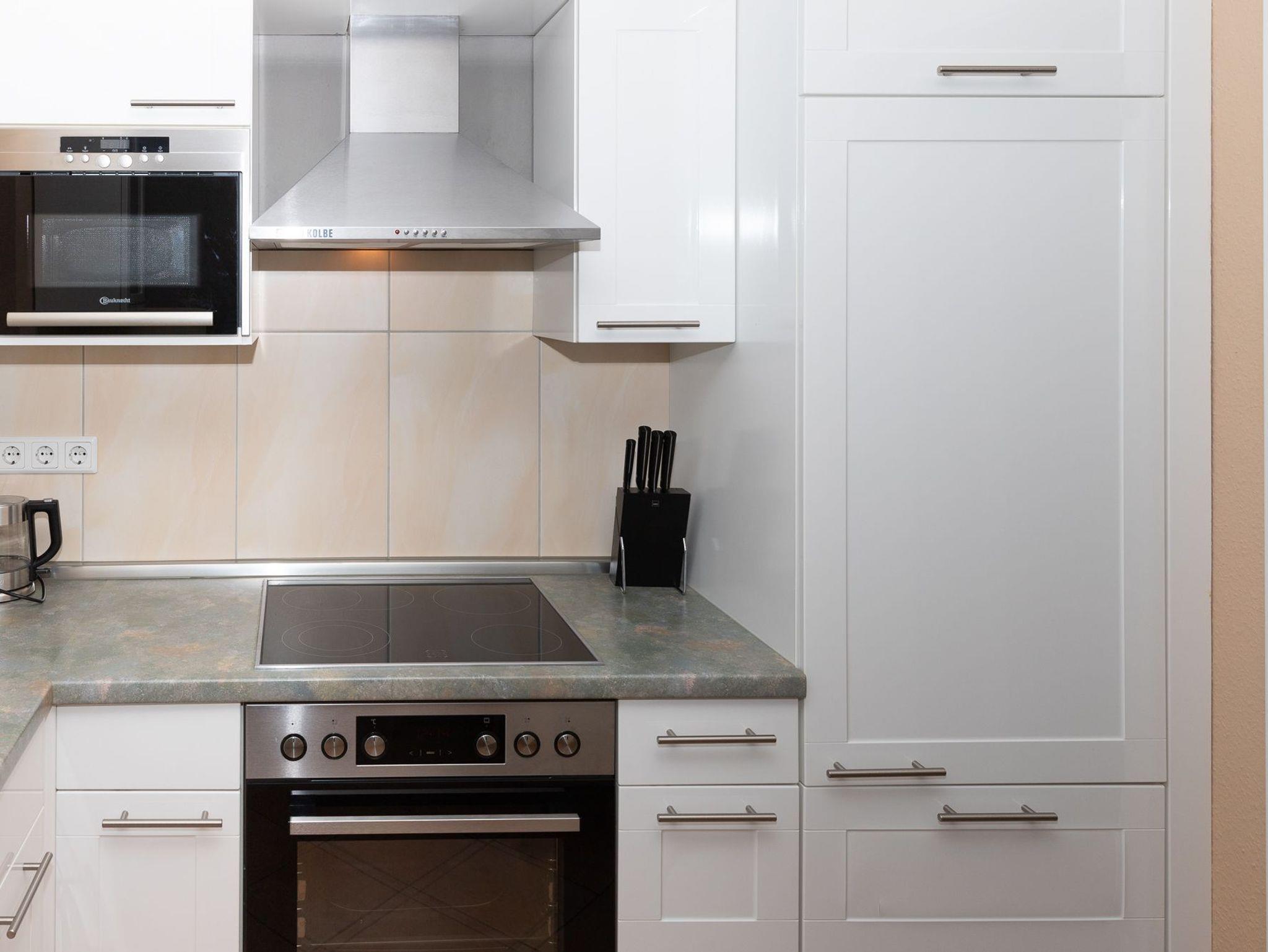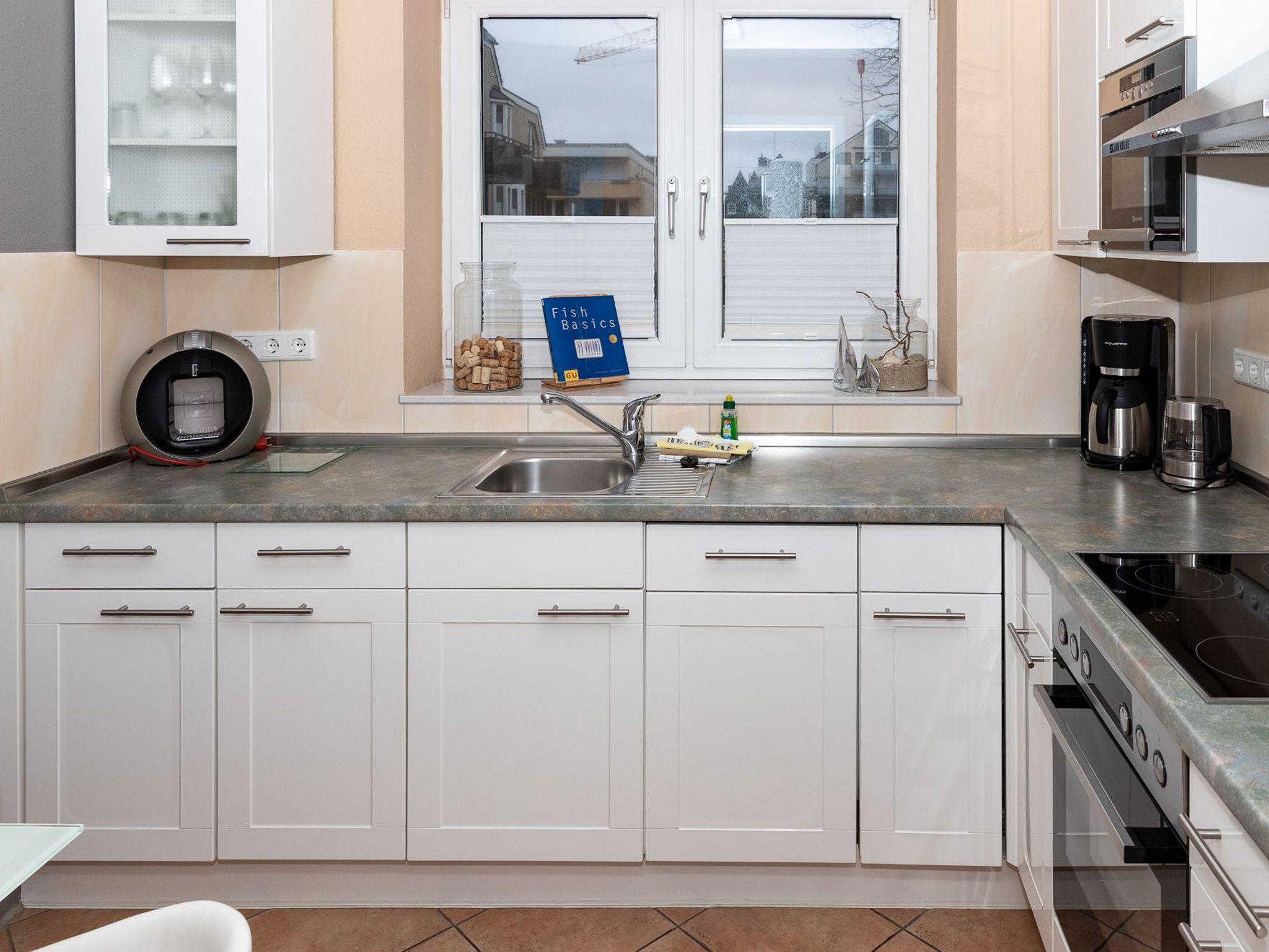 Die separate Küche ist voll ausgestattet mit Geschirrspüler, Backofen, Kaffeemaschine, Toaster und zusätzlicher Senseo-Pad-Maschine.