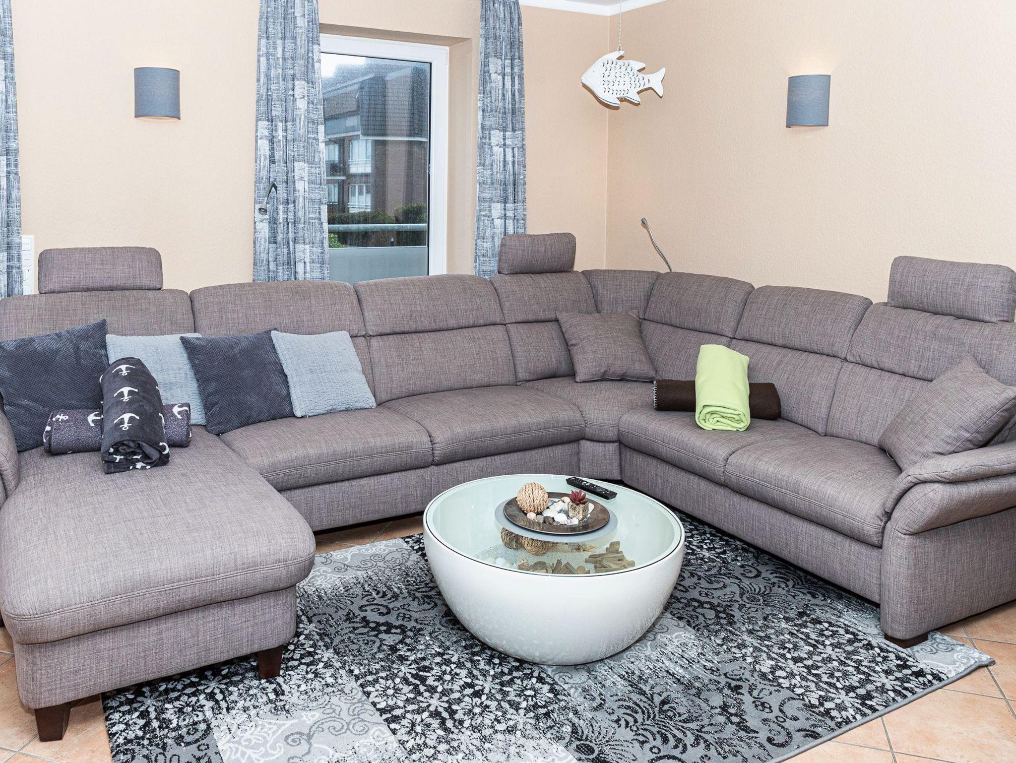 Für eine fünfte Person steht ein komfortabler Schlafplatz auf dem großen Sofa mit Auszug und Topper bereit.