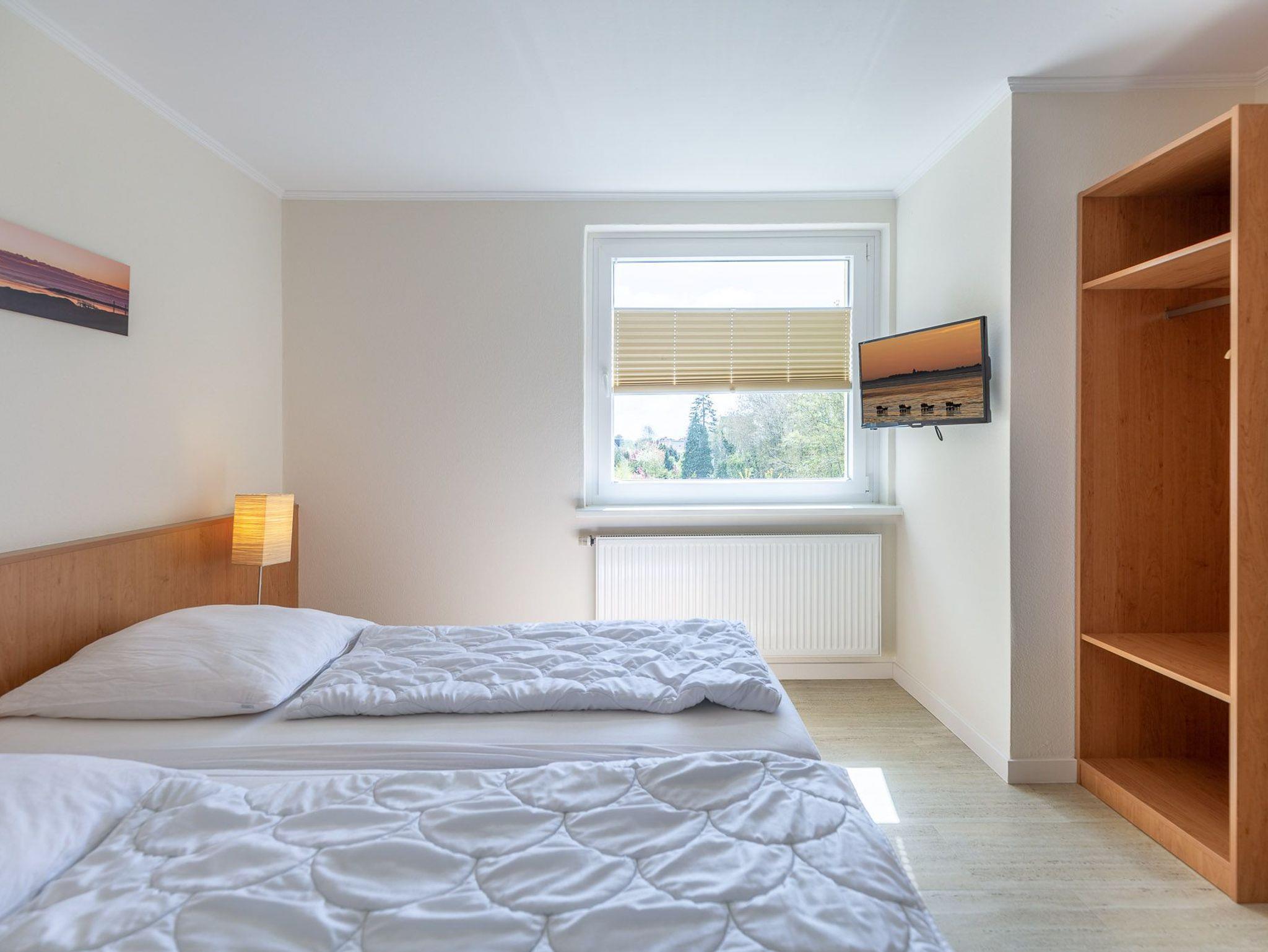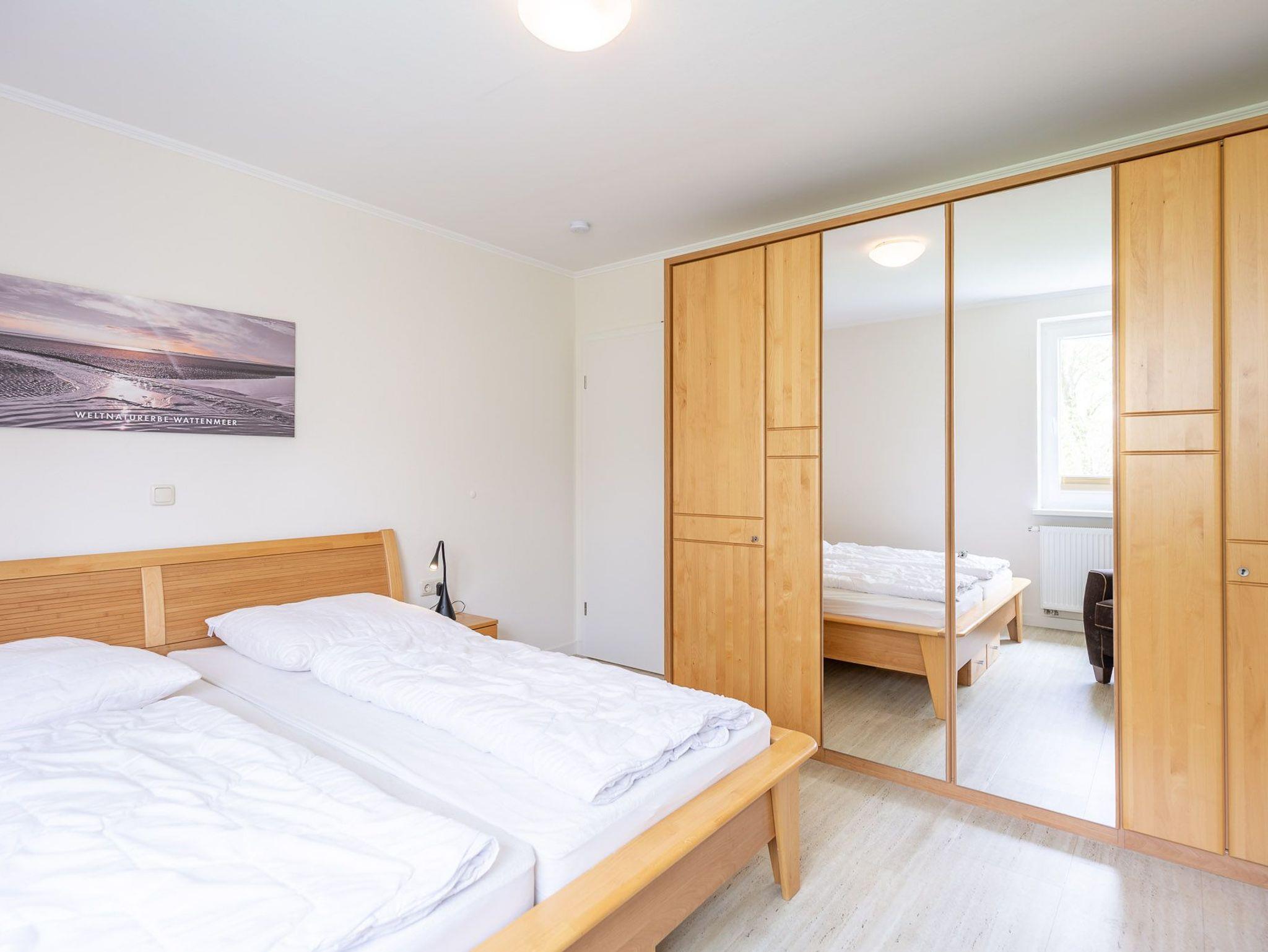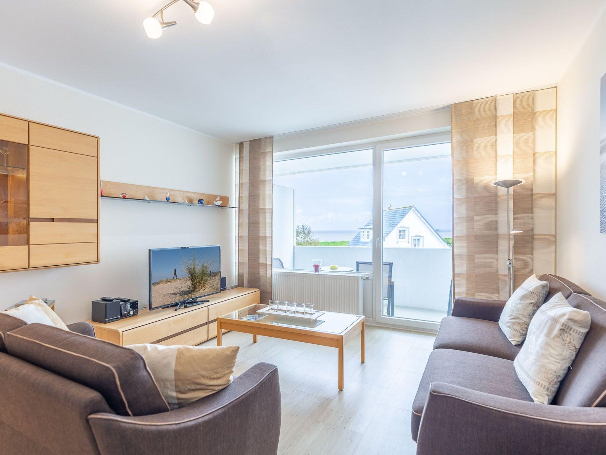 Mit 2 separaten Schlafzimmern, einer separaten Küche, einem modernen Bad, einem Wohn-/Esszimmer mit Meerblick und einem Balkon bietet die großzügige Ferienwohnung auf 70 m² genügend Platz für 2 bis 4 Personen. In der voll ausgestatteten Küche mit Durchreiche, Backofen und Geschirrspüler finden Sie jeglichen Komfort, den Sie in Ihrem Urlaub erwarten.