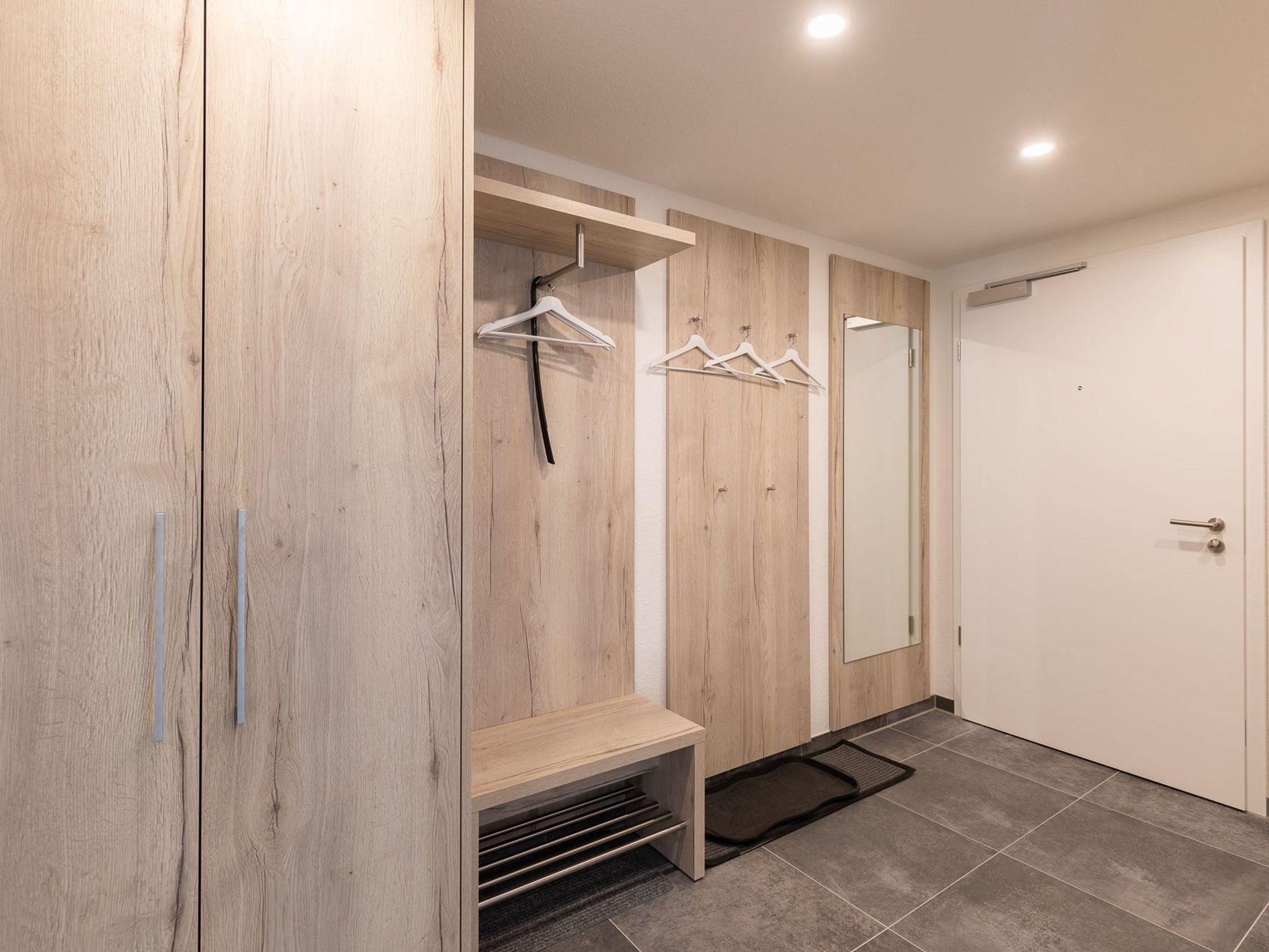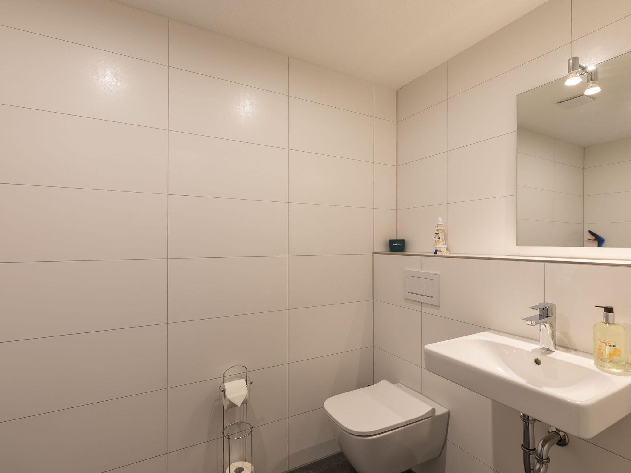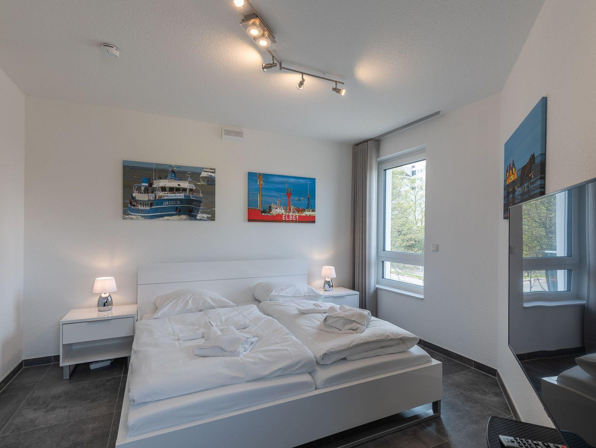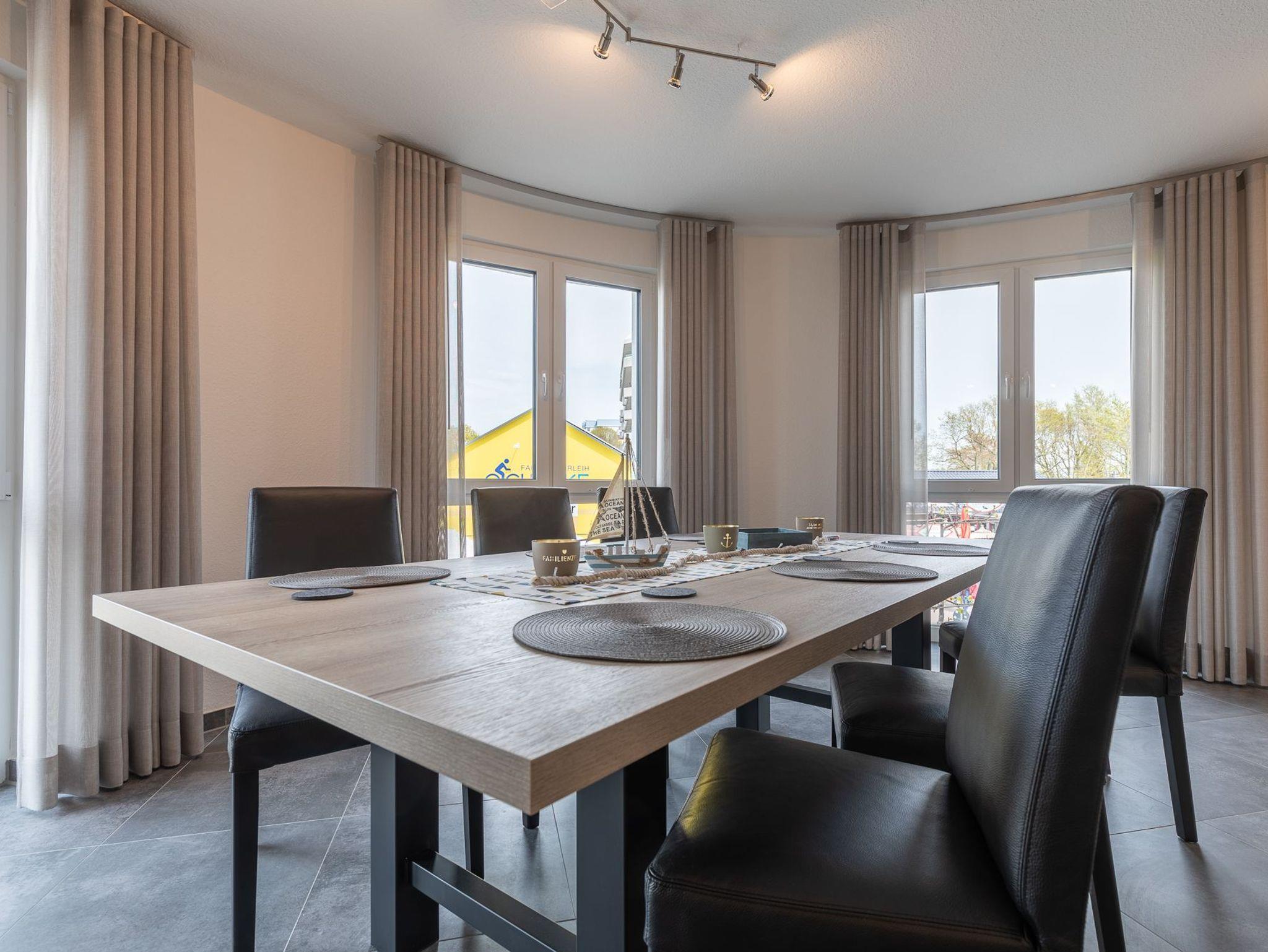 3 Zimmerwohnung mit ca. 90 m² im 1. Obergeschoss für bis zu 4 Personen. 2 Schlafzimmer mit Doppelbett (200 x 180) und TV, 1 Wohnzimmer mit Essplatz, TV Anlage, hochwertige Küche mit Cerankochfeld, Backofen, Geschirrspüler, Kühlschrank mit Gefrierfach, Toaster, Wasserkocher und allem was zur Küche gehört, 1 Duschbad mit ebenerdiger Dusche, Waschbecken, 1 Gäste WC, Lüftungsanlage mit Fußbodenheizung in allen Räumen, 1 Balkon mit Stühlen, Tisch und einer Teilseesicht, Videosprechanlage, Rauchmelder in allen Räumen, 1 Tiefgaragenstellplatz im Haus. Das Haus verfügt über einen Fahrstuhl.