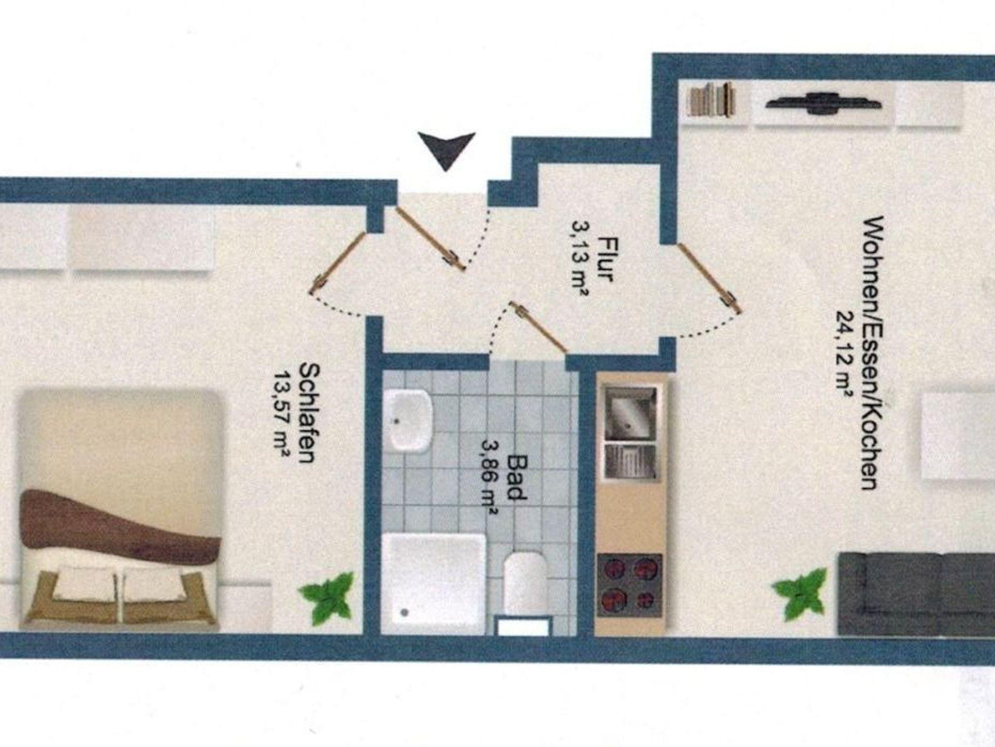 Sie wohnen in einem großzügigen 2-Zimmer-Appartement für bis zu 4 Personen auf ca. 46 m² Wohnfläche im Erdgeschoss. Das Schlafzimmer wurde neu eingerichtet und bietet ein gemütliches Doppelbett mit modernem Schrank und viel Stauraum mit Globo-Lightning. Der Wohn-Schlafraum hat eine bequeme Doppelbettcouch, separaten Essplatz und einen voll ausgestatteten Küchenbereich. Zur Wohnung gehören ein komplett renoviertes Bad mit Dusche/WC, Balkon, SAT-TV und WLAN. PKW-Stellplatz in der Tiefgarage.