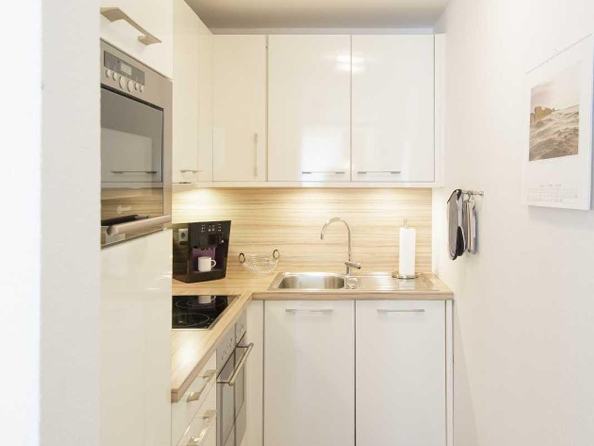 In den Wohnbereich integriert ist neben dem Essplatz für vier Personen eine voll ausgestattete Einbauküche mit allem Komfort.