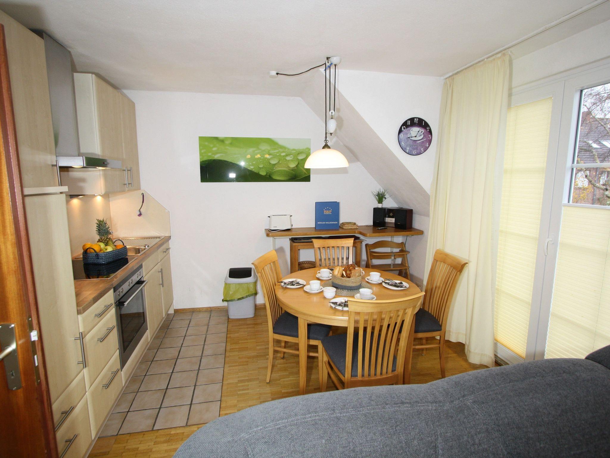 Sie wohnen in einem 3-Zimmer-Appartement für bis zu 4 Personen auf ca. 49 m² im Dachgeschoss des Friesenhauses. Beide Schlafzimmer sind mit Boxspringbetten ausgestattet, in den Größen 140 cm x 200 cm und 180 cm x 200 cm. Wohnraum mit gemütlicher Couch und Kamin, separater Essplatz, voll ausgestatteter Küchenbereich mit Mikrowelle, Dusche/WC, Balkon, SAT-Flachbild-TV. Für die Zeit vom Mai bis September steht ein kostenloser Strandkorb L415 im Sandstrand beim Döser Strandhaus im Feld 60 zur Verfügung.