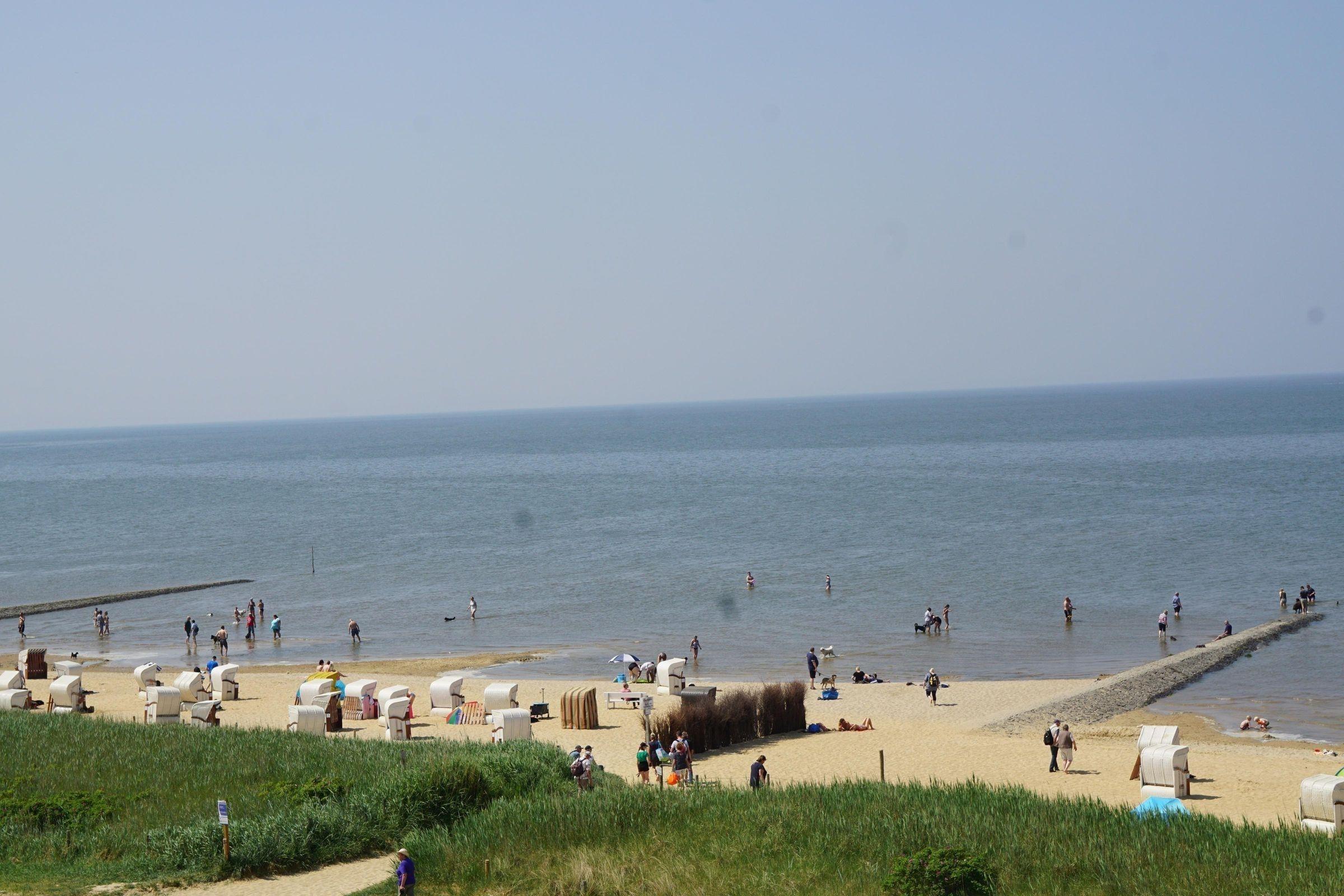 Maritime Ferienwohnung mit Meerblick, verglaster Loggia und Schwimmbadzugang direkt am Sahlenburger Strand in Cuxhaven.
