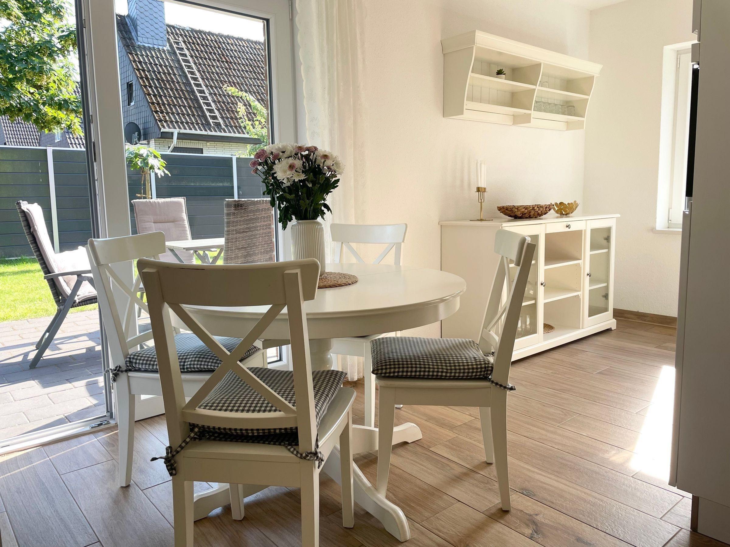 Das exklusive Erdgeschoss-Ferienapartment bietet Platz für bis zu 6 Personen und zeichnet sich durch seine helle, freundliche Einrichtung aus. Es verfügt über zwei separate Schlafzimmer, beide mit Flachbild-Fernsehern, sowie ein Wohnzimmer mit einer aufklappbaren Schlafcouch. Das moderne, behindertenfreundliche Badezimmer ist mit einer großzügigen Walk-In-Dusche ausgestattet. Die offene Küchenzeile lässt mit Geschirrspüler, Induktionsherd, Mikrowelle, Backofen, Kaffeemaschine und Wasserkocher keine Wünsche offen. Zusätzlich gehört zur Wohnung eine eigene Terrasse mit Gartenmöbeln und ein eingezäunter Garten. Die Lage in unmittelbarer Strandnähe ermöglicht den einfachen Zugang zu zahlreichen Restaurants und Geschäften, die fußläufig erreichbar sind. Diese Wohnung ist der perfekte Ausgangspunkt für einen komfortablen Cuxhaven-Urlaub.