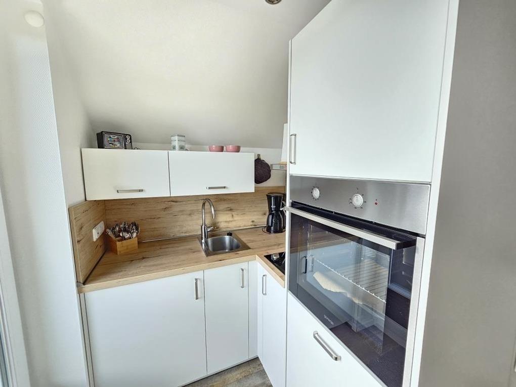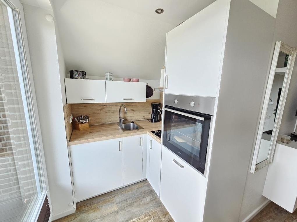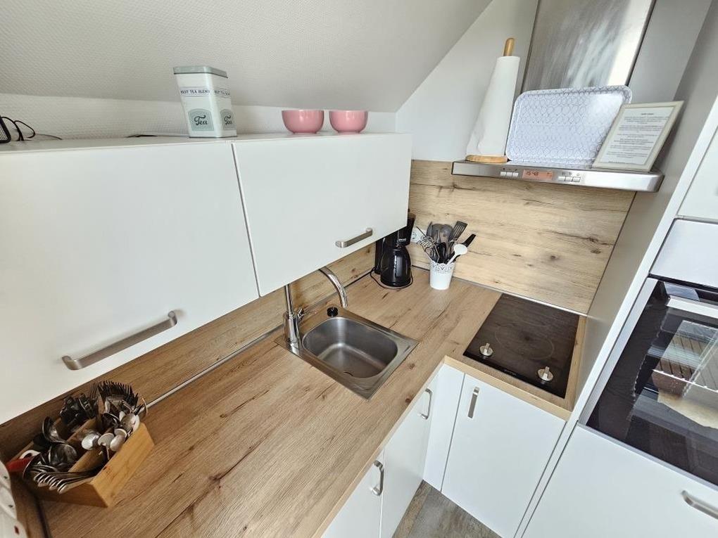 Die Küchenzeile bietet Ihnen ebenfalls viel Komfort auf kleinem Raum. Herd (mit zwei Platten), Backofen, Kühlschrank mit Gefrierfach und Spülmaschine stehen ebenso zur Verfügung wie Toaster, Wasserkocher und Kaffeemaschine. Auch Besteck, Geschirr und Küchenutensilien fehlen nicht, so dass eine sorgenfreie Selbstversorgung möglich ist.