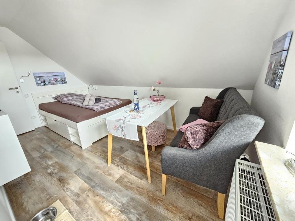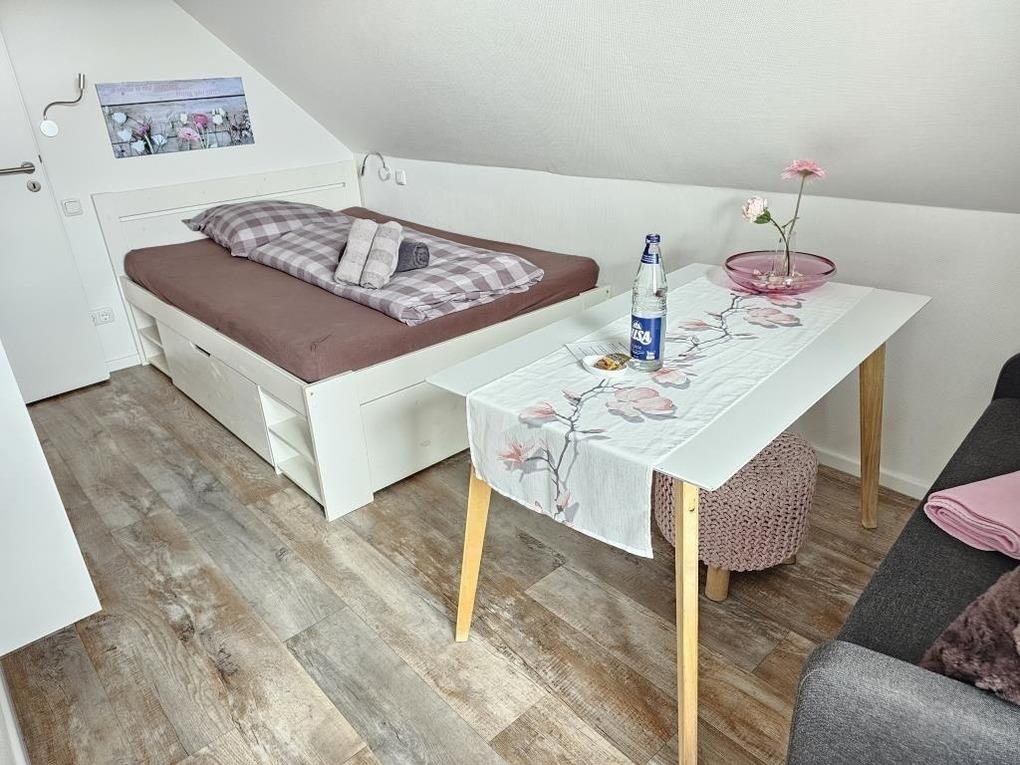 Charmantes, neu renoviertes Ein-Zimmer-Appartement für zwei Personen. Mit viel Liebe zum Detail modern eingerichtet bietet Ihnen die Wohnung auf kleinem Raum alle wünschenswerten Annehmlichkeiten. Mit Balkon, Gemeinschaftsgarten und WLAN. Hunde erlaubt!