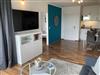 Im freundlichen und geräumigen Wohnbereich erwartet Sie ein bequemes Sofa, das zum Entspannen nach einem langen Strandtag einlädt. Für zusätzliche Schlafmöglichkeiten sorgt das platzsparende Schrankbett, das sich leicht in eine komfortable Liegefläche verwandeln lässt. Ein Flachbildfernseher sorgt für Unterhaltung, falls Sie sich mal eine Auszeit von den Outdoor-Aktivitäten nehmen möchten.