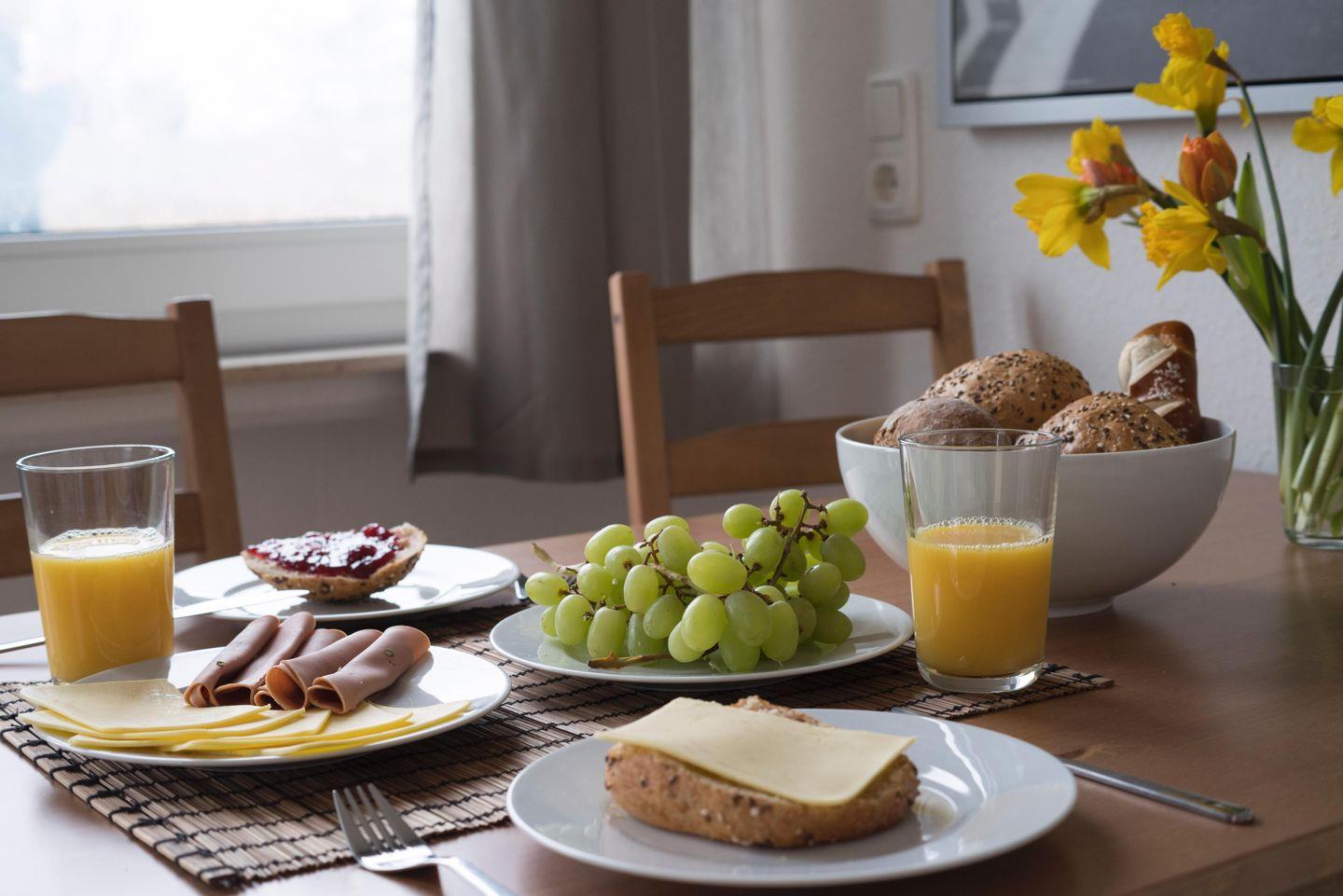 Die Küche unserer Ferienwohnung ist vollständig ausgestattet und lässt keine Wünsche offen. Sie finden alles, was Sie benötigen, um sich selbst zu verpflegen, inklusive einem 2-Platten-Herd, Kühlschrank, Kaffeemaschine, Toaster und Wasserkocher. Der Esstisch im Apartment lädt zum gemeinsamen Speisen ein und sorgt für Geselligkeit. Alternativ können Sie die zahlreichen Restaurants in der Nähe ausprobieren, die lokale und internationale Küche anbieten.
