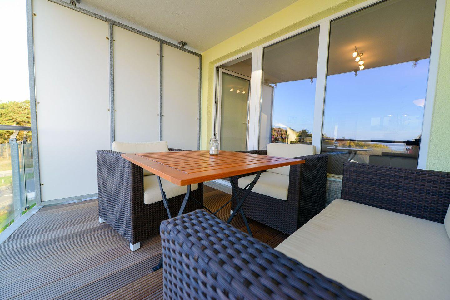 Besondere Stunden lassen sich auf einem der beiden überdachten Balkone verbringen, von denen einer einen direkten Blick aufs Meer und die Insel Neuwerk bietet und auf welchen man ganz entspannt den Abend nach einem langen Tag am Strand ausklingen lassen kann.