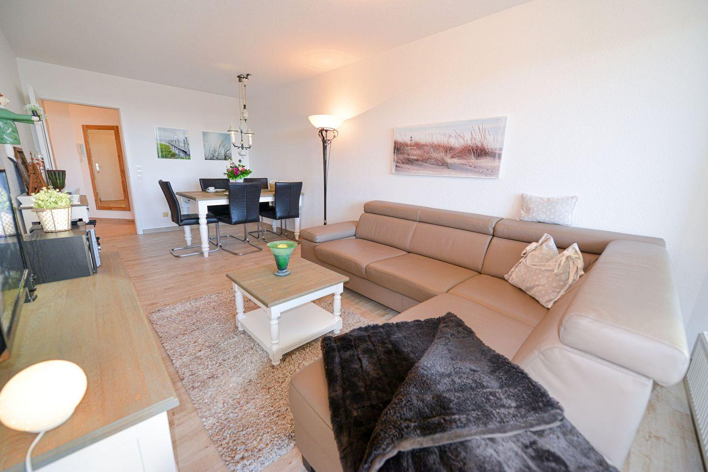 Urlauber, die gemeinsam mit Ihrem Hund verreisen sind genauso willkommen, wie Urlauber ohne Haustier. Für eine komfortable An- und Abreise bietet die Ferienwohnung einen kostenlosen Parkplatz in der Tiefgarage des Hauses. Saisonbedingt befindet sich ein Bäcker direkt im Haus.