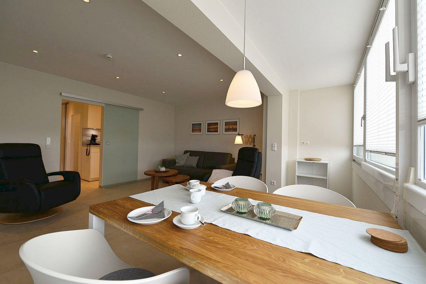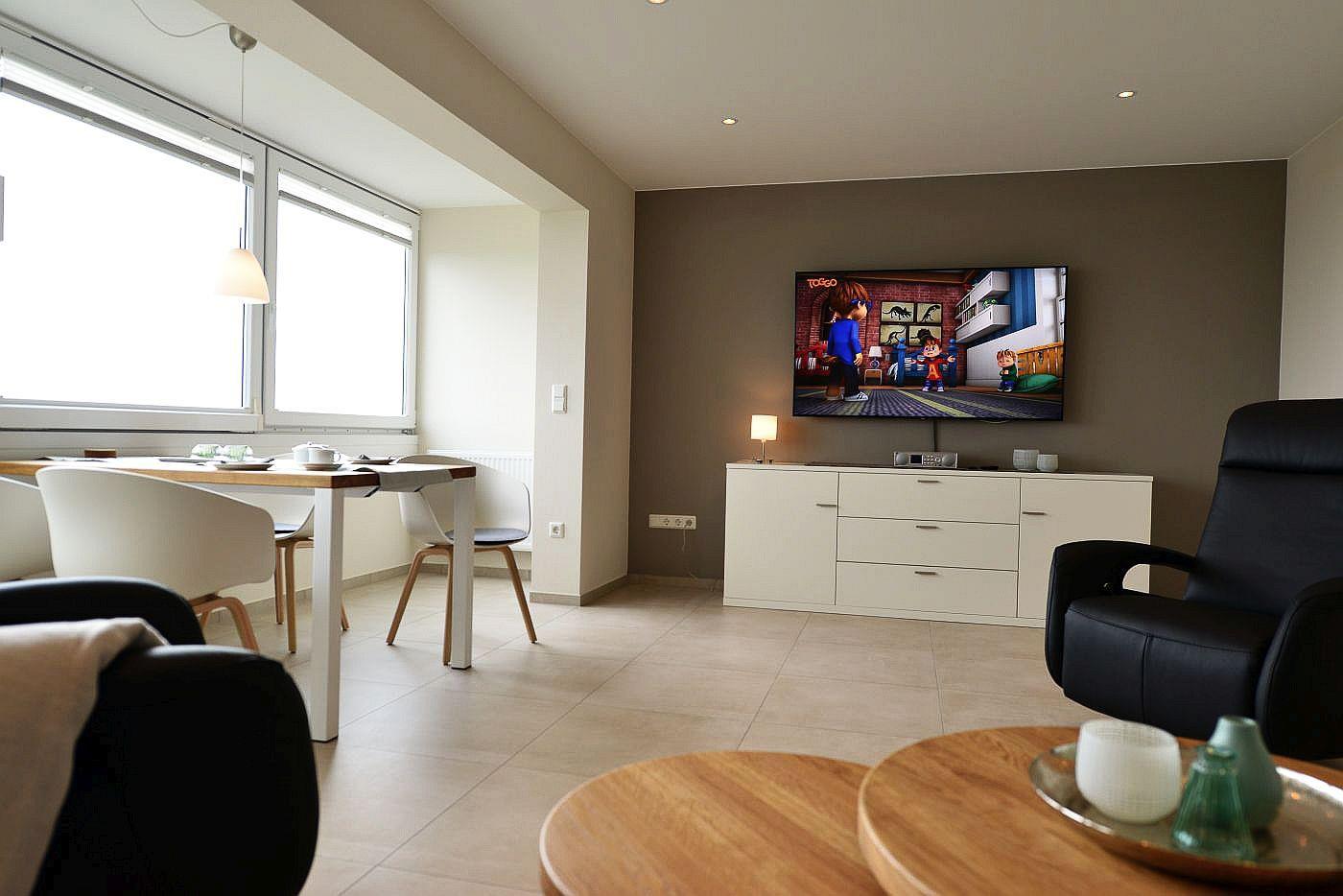 Die modern eingerichtete Ferienwohnung im Strandhochhaus Sahlenburg begrüßt Sie mit hochwertiger Ausstattung, Schwimmbad, Sauna und viel Raum für einen entspannten Urlaub - Meeresrauschen inklusive!