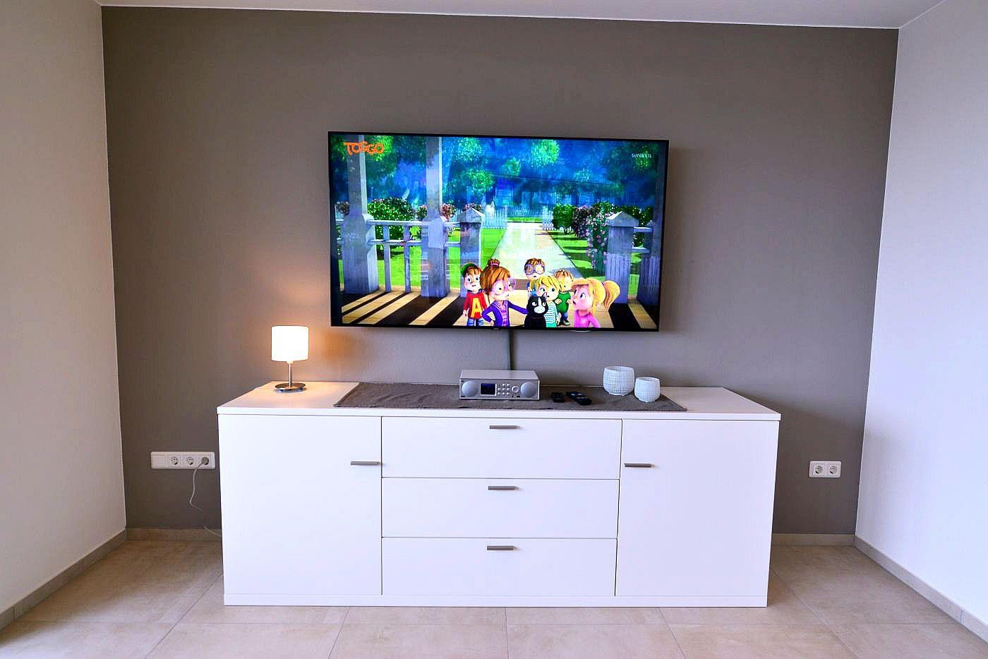 Die zwei Flatscreen TVs (Wohnzimmer 65 Zoll, Schlafzimmer 37 Zoll) und das integrierte kostenfreie WLAN sorgen für entspannte TV Abende, um sich vom langen Strandtag zu erholen.