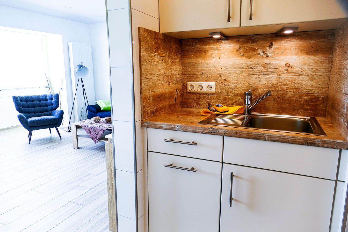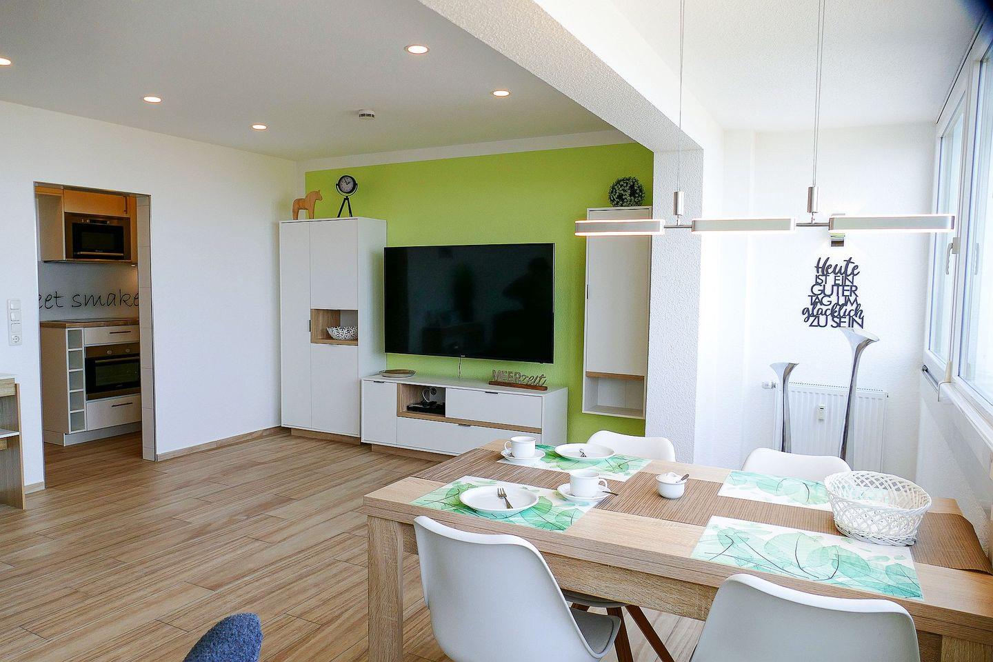 Die Ferienwohnung befindet sich in direkter Strandlage mit einer separaten und offenen Küchenzeile, sodass Sie jeden Urlaubstag mit einem entspannten Frühstück mit direktem Blick aufs Meer beginnen können.