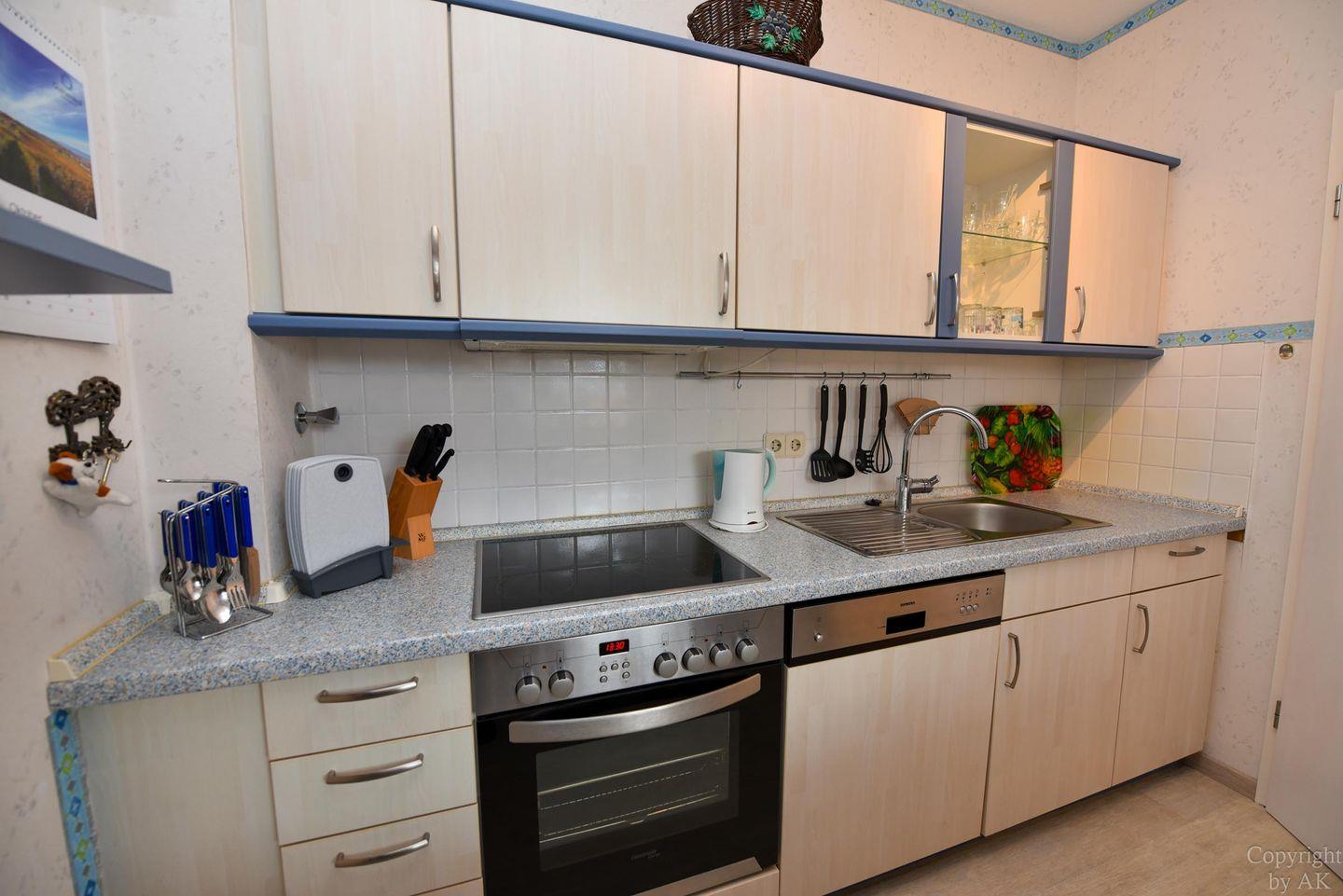 Im Inneren der Wohnung erwartet Sie ein komfortables Schlafzimmer mit einem Doppelbett und ausreichend Stauraum für Ihre persönlichen Gegenstände. Für zusätzliche Schlafmöglichkeiten sorgt eine gemütliche Schlafnische, die ebenfalls mit einem Doppelbett ausgestattet ist. Das großzügige Wohnzimmer lädt zu entspannten Abenden vor dem Flachbildfernseher ein, und die voll ausgestattete Küche mit modernen Geräten wie Kaffeemaschine, Toaster und Spülmaschine lässt keine Wünsche offen. Ein modernes Badezimmer mit Dusche, WC und Waschbecken rundet das Angebot ab.
