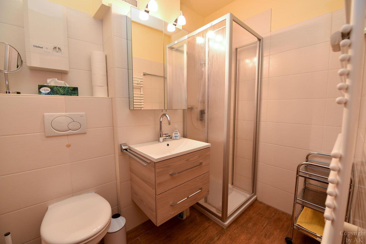 Die Wohnung ist modern und geschmackvoll eingerichtet und verfügt über ein besonderes Highlight: zwei Balkone, die zu unterschiedlichen Tageszeiten Sonne bieten. Der große Balkon ist ein wahrer Sonnenfänger von morgens bis mittags und bietet viel Privatsphäre. Hier können Sie in Ruhe Ihren Morgenkaffee genießen. Der kleinere Balkon ist der perfekte Ort, um die Nachmittagssonne zu genießen und den Tag bei einem Glas Wein ausklingen zu lassen.