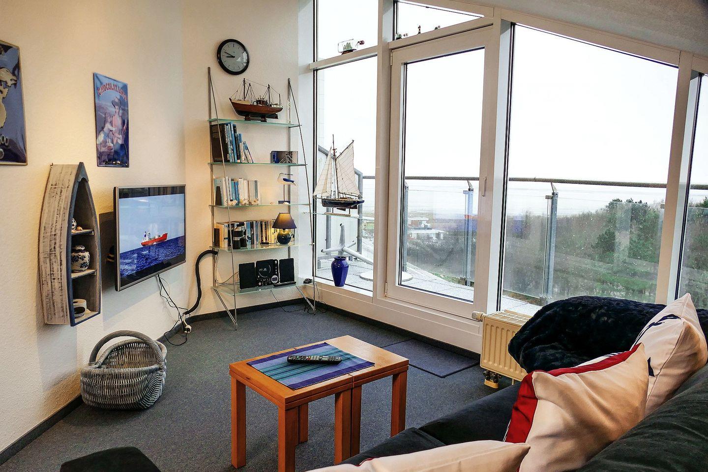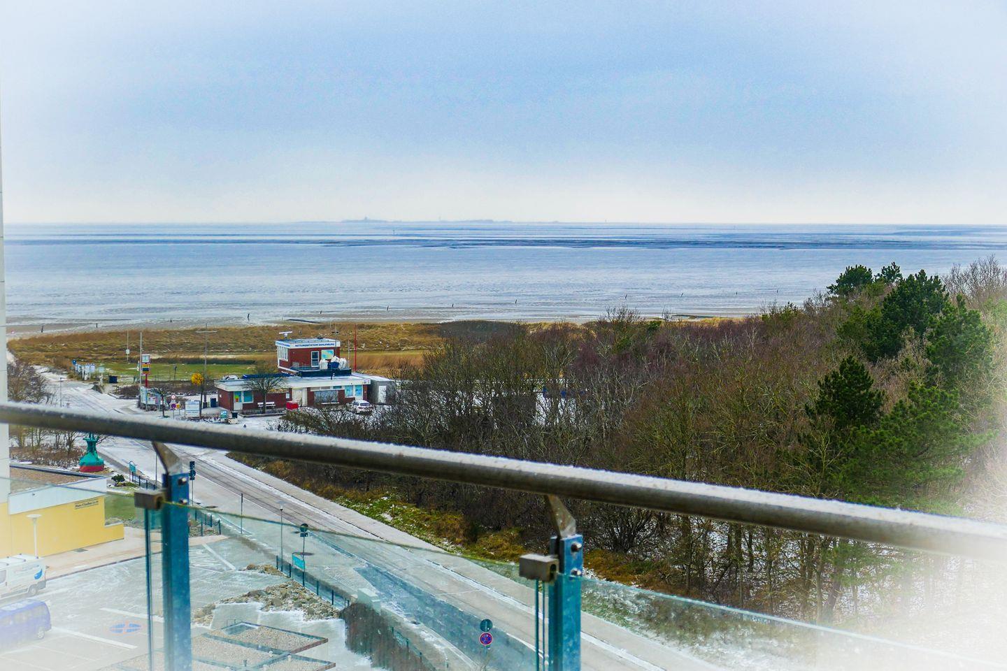 Penthousewohnung in Cuxhaven mit Meerblick und Balkon, nur 200 m vom Strand entfernt, ideal für einen erholsamen Nordseeurlaub.