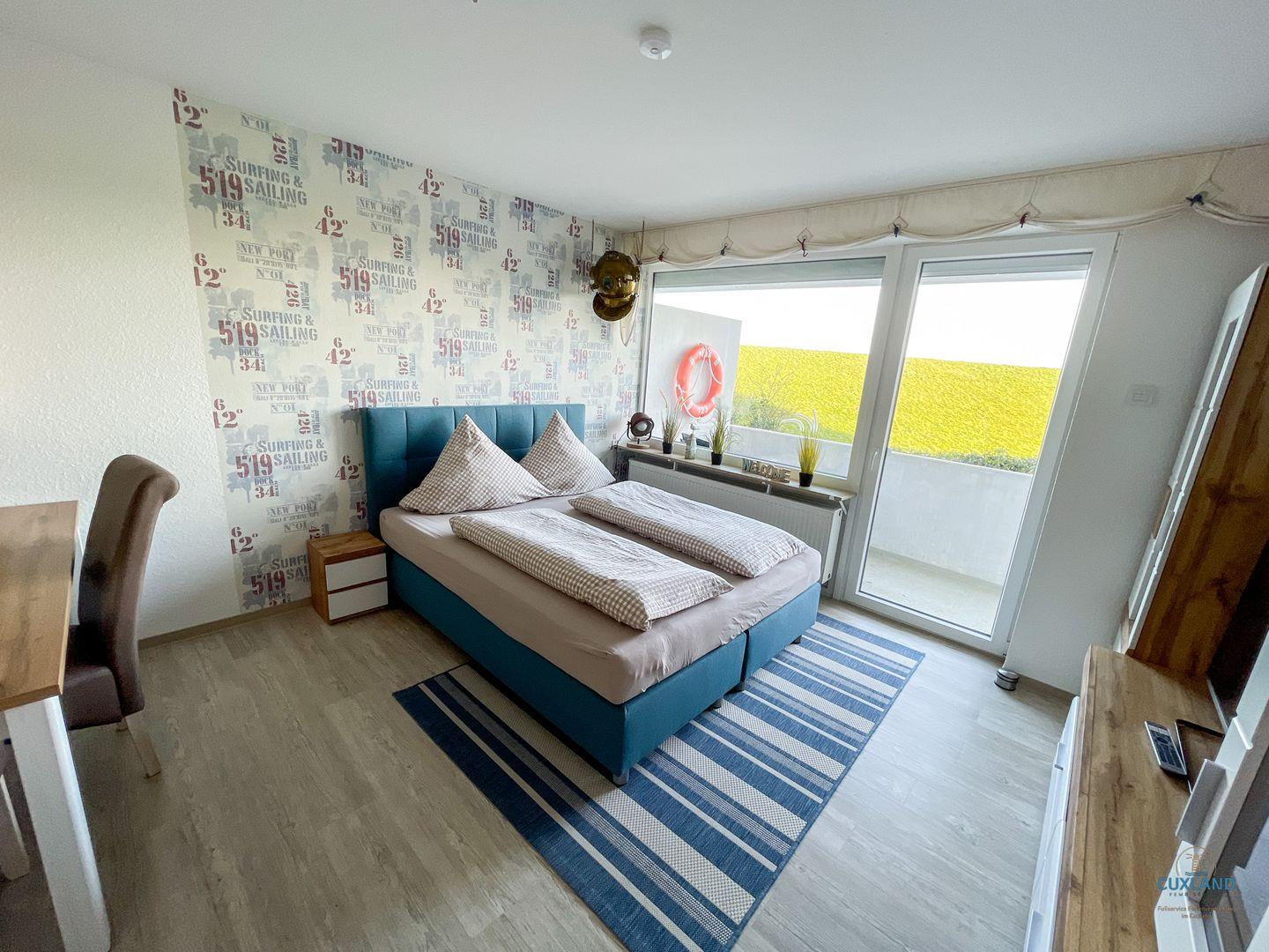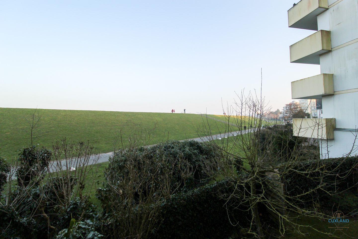 Maritimes Appartement im Haus Nautic mit Balkon und Blick auf den Nordseedeich.