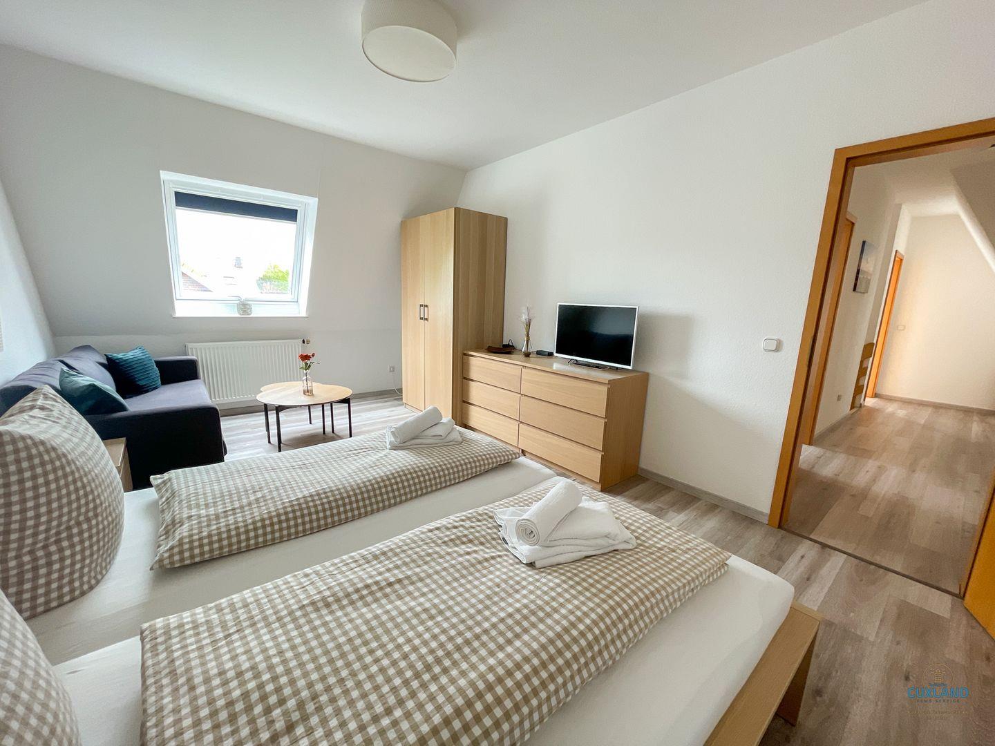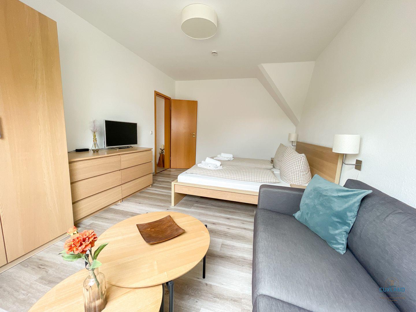 Gemütliche 57qm Wohnung über zwei Ebenen in Sahlenburg mit Terrasse, WLAN und eigenem Parkplatz, ideal für bis zu 4 Personen.