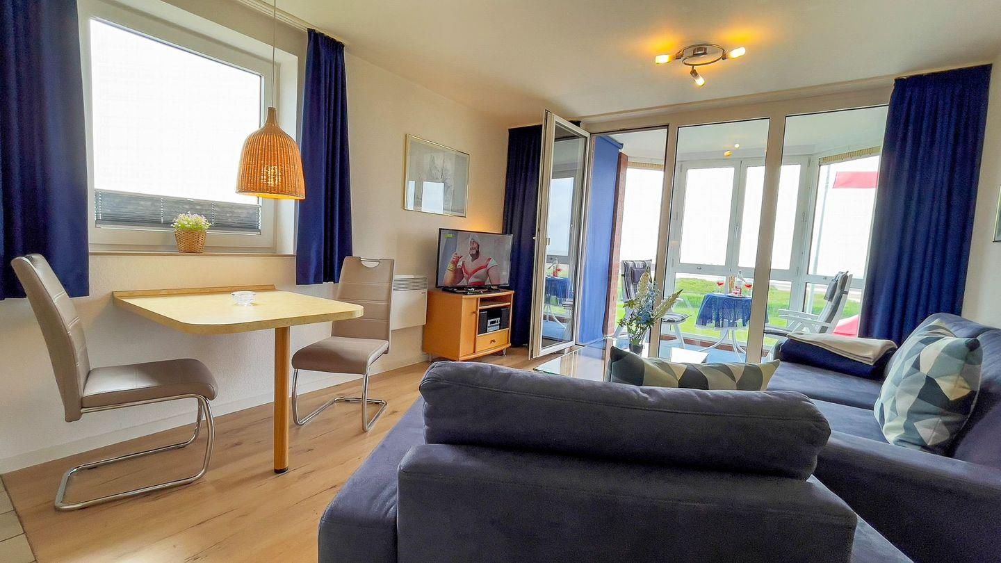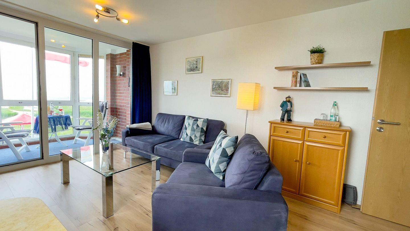 Moderne Ferienwohnung in Cuxhaven-Sahlenburg mit Meerblick, Balkon, WLAN und Sauna für erholsame Tage am Strand.