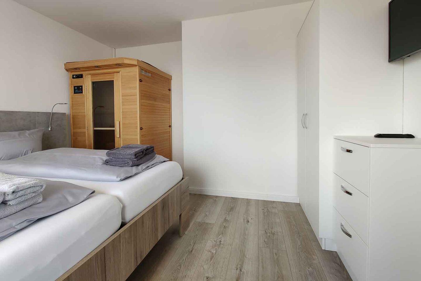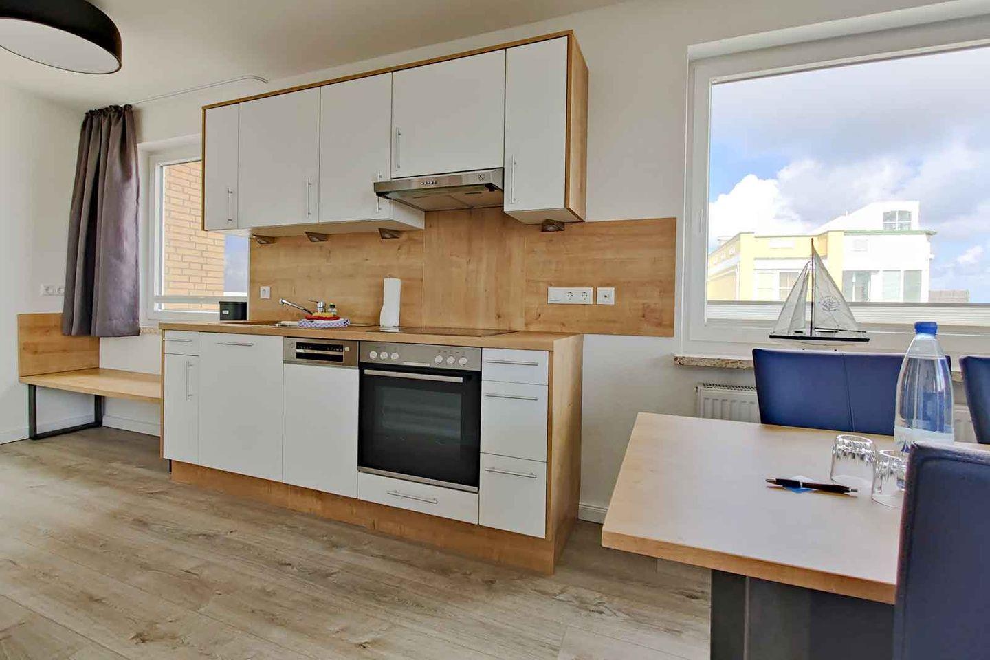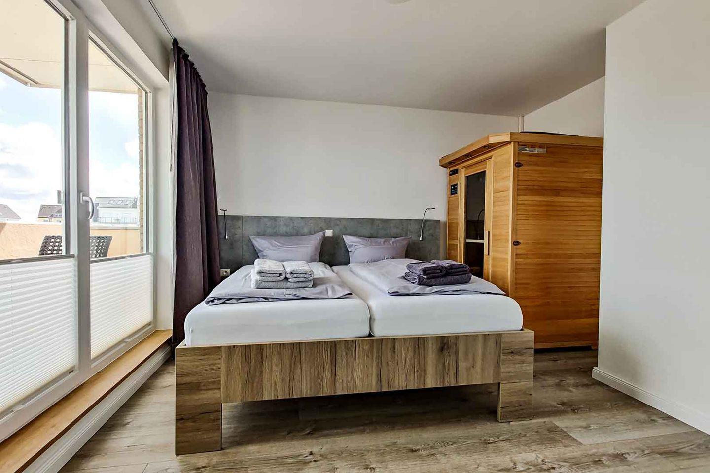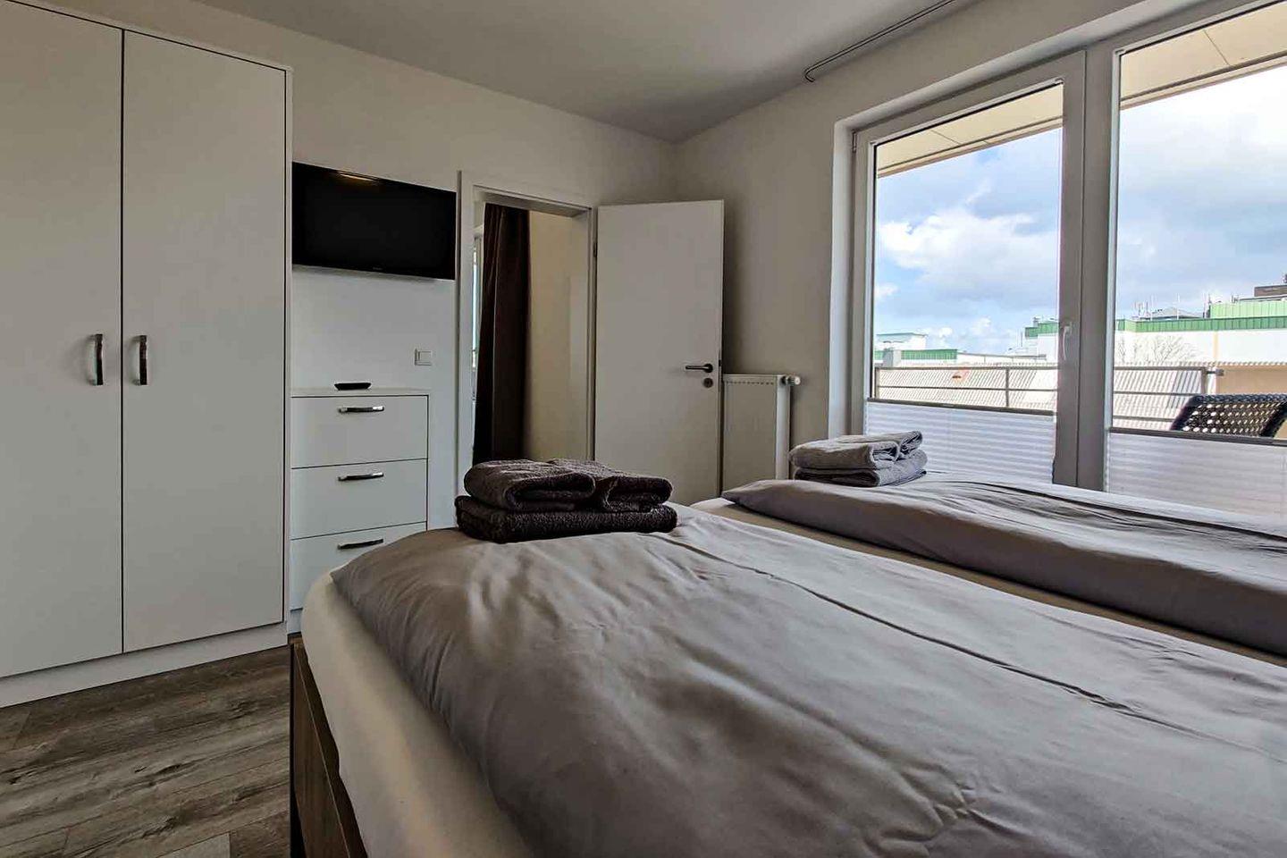 Die 2021 sanierte / renovierte Ferienwohnung punktet auf allen Ebenen. Im geschmackvoll eingerichteten Wohnraum befinden sich die offene Küche, der Essbereich und ein Schlafsofa mit eigener Matratze. Zwei Schlafzimmer (eines davon mit Wärmekabine) und zwei Duschbäder ergänzen das Wohnkonzept. Zwei der drei Balkone bieten nicht nur die frische Luft der Nordsee sondern auch einen Blick aufs Meer. Zur Wohnung gehört ein KFZ-Außenstellplatz.