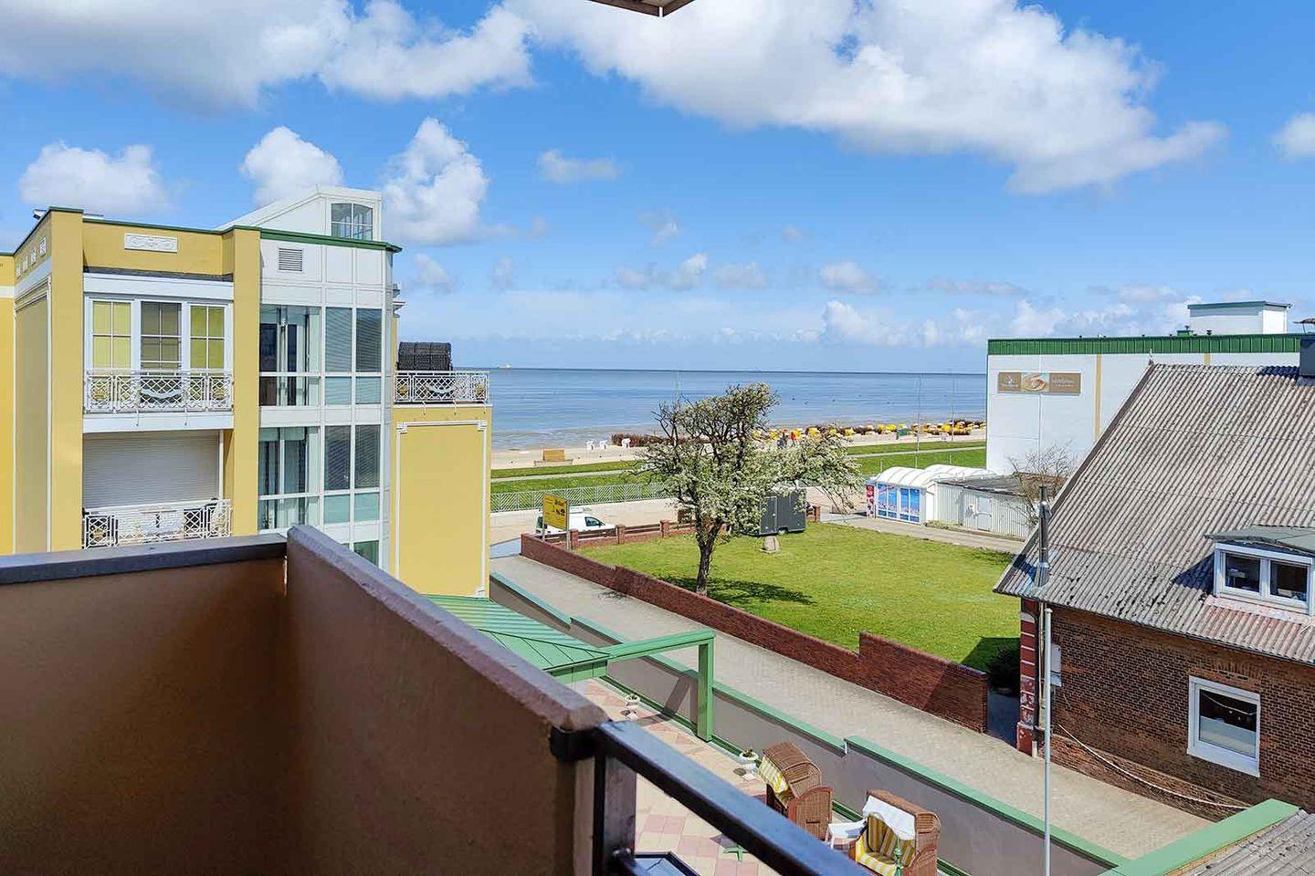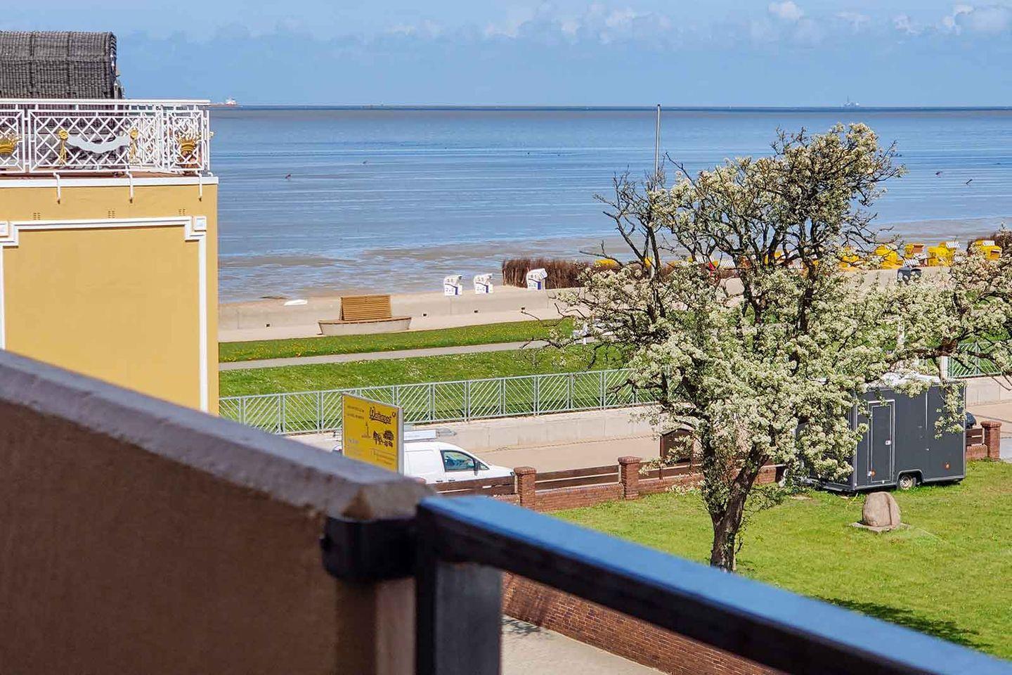 Moderne Ferienwohnung in Cuxhaven mit Meerblick, drei Balkonen und Strandnähe für erholsame Tage an der Nordsee.