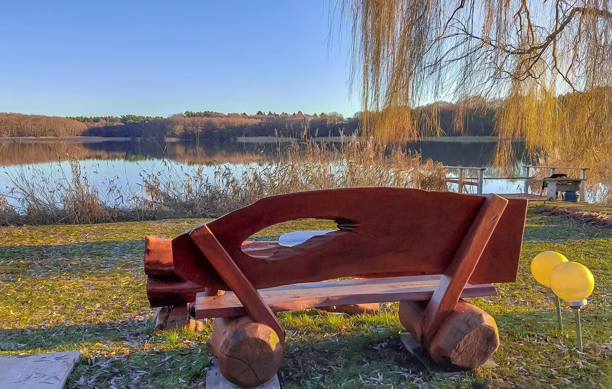 Die ca. 65 qm große Zweiraum-Ferienwohnung für 2 Personen befindet sich separat im Obergeschoss eines Wohnnebengebäudes auf dem etwa 3000 qm großen Wohn- und Seegrundstück des Eigentümers unmittelbar am Dabeler See. In ca. 20 m Entfernung steht Ihnen ein Bereich von etwa 300 qm am See mit Boots- und Angelsteg, möbliertem Pavillon, Sonnenliegen, Grillmöglichkeit sowie Ruderboot zur eigenen Nutzung zur Verfügung. Eine objekteigene Badestelle befindet sich ebenfalls auf dem Grundstück. Der See ist sehr fischreich, darum ein Tipp für Angler. Der Eigentümer unterstützt bei der Auswahl der Angelmethode und zeigt Ihnen die besten Angelstellen.