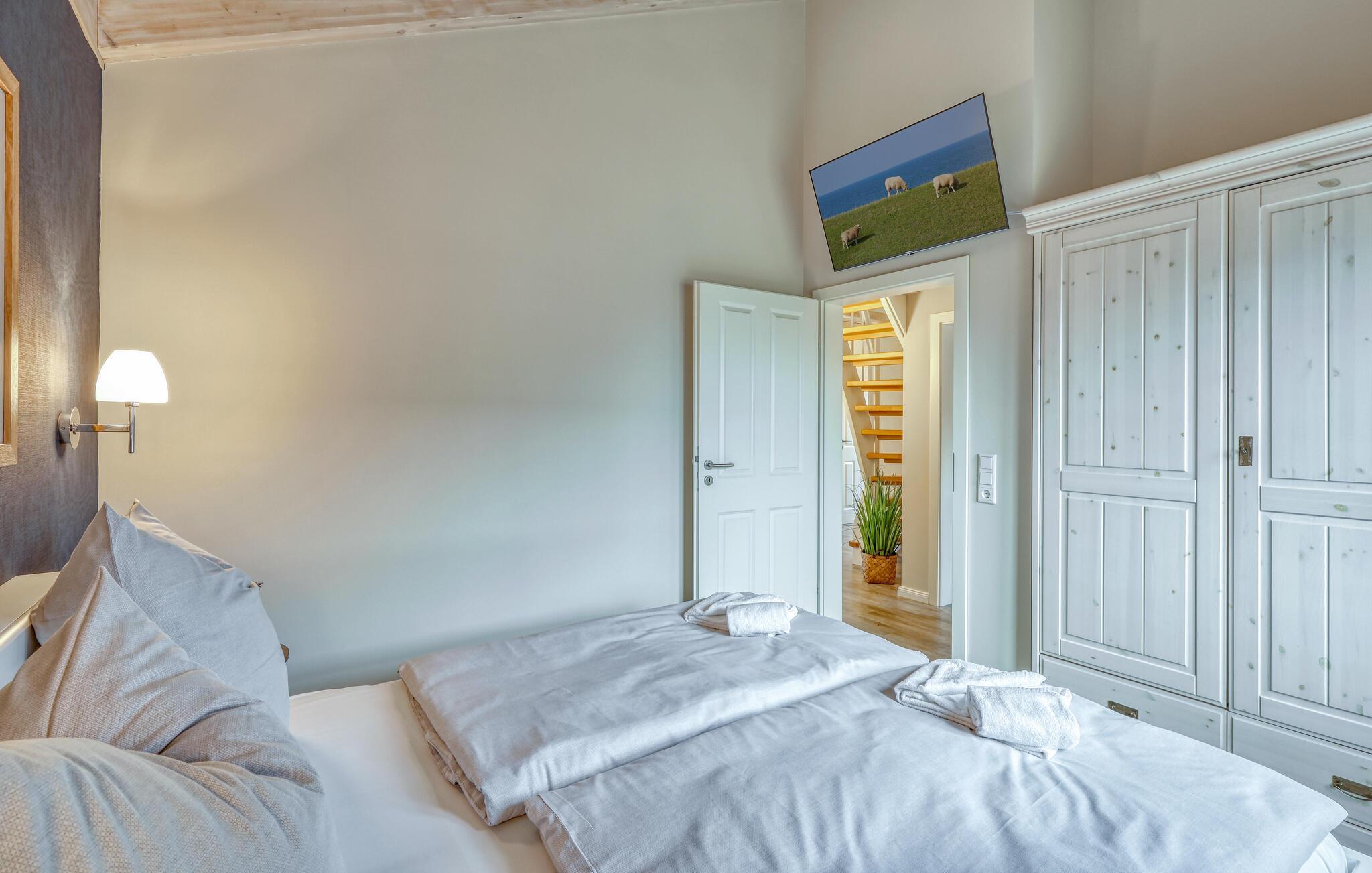 Eine besondere Perle in Dagebüll erwartet Sie mit diesem freistehenden, verklinkerten Ferienhaus an der Nordsee. Hier können Sie die Seele auf der Terrasse baumeln lassen und die frische Nordseeluft genießen. Erholung pur! Das Haus ist mit hochwertigen Möbeln ausgestattet und alle Räume sind großzügig gestaltet. Dank der hauseigenen Sauna und des gemütlichen Kaminofens ist das Haus auch in der kalten Jahreszeit ein wahres Highlight. Nach einem langen Spaziergang am Deich entlang, können Sie es sich hier herrlich gemütlich machen und sich wieder aufwärmen.