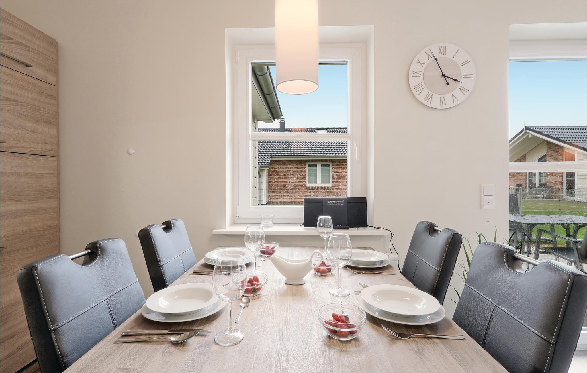 Die verklinkerte Doppelhaushälfte ist modern und gemütlich ausgestattet. Durch die offene Raumgestaltung sind die Zimmer hell und lichtdurchflutet. Im Wohn/Essbereich gibt es nicht nur eine gemütliche Sofaecke mit Kaminofen, sondern auch eine moderne Küchenzeile und einen Essplatz für bis zu vier Personen. So ist für ein gemeinsames Zusammensein mit Besuch genügend Platz. Die andere Haushälfte finden Sie unter der Nummer DSH892 - ideal zum Beispiel für gemeinsam reisende Paare, die Wert auf Privatsphäre legen.