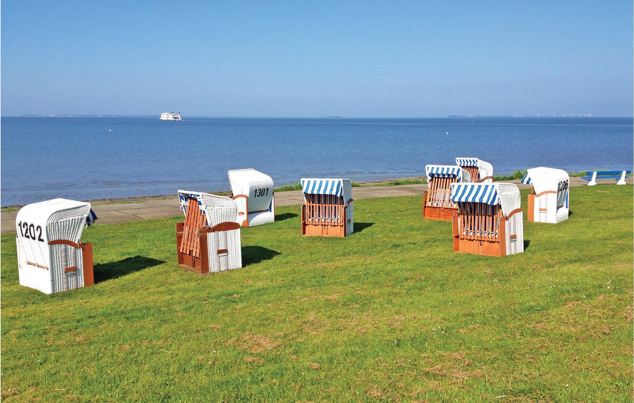 Das Ferienhaus liegt nur 200 m von der Nordsee und Dagebülls immergrünem Strand entfernt, der zum Baden einlädt. Die vielen Deiche rund herum bieten ein perfektes Revier für Radler - einen Fahrradverleih finden Sie praktischerweise direkt im Ferienhausdorf. Im Ortszentrum von Dagebüll, an das die Ferienhäuser direkt angrenzen, finden Sie kleine Läden, Restaurants und einen Kaufmann. Direkt gegenüber legen die Fähren auf die Nordseeinseln Amrum und Föhr ab - perfekt für einen Tagesausflug! Vom nahen Hafen in Schlüttsiel aus (ca. 8km) erreicht man auch die kleinen Halligen Hooge und Langeneß schnell und entspannt per Schiff.