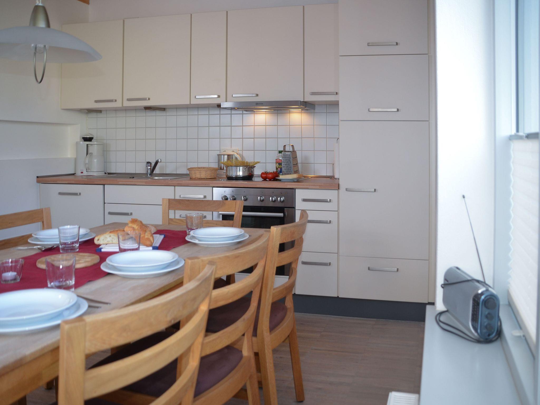 Die Küche ist vollständig mit Spülmaschine, Mikrowelle, Kaffeemaschine, Wasserkocher, Toaster, Mixer, Geschirr, Besteck, Töpfen, Pfannen und weiteren wichtigen Küchenhelfern ausgestattet. Geschirrhandtücher, Schwämme, Müllbeutel etc. stellen wir Ihnen ausreichend zur Verfügung. Eine Anfangsausstattung an Spülmaschinentabs, Küchenrolle und Toilettenpapier steht ebenfalls für die ersten Tage Ihres Aufenthalts bereit.