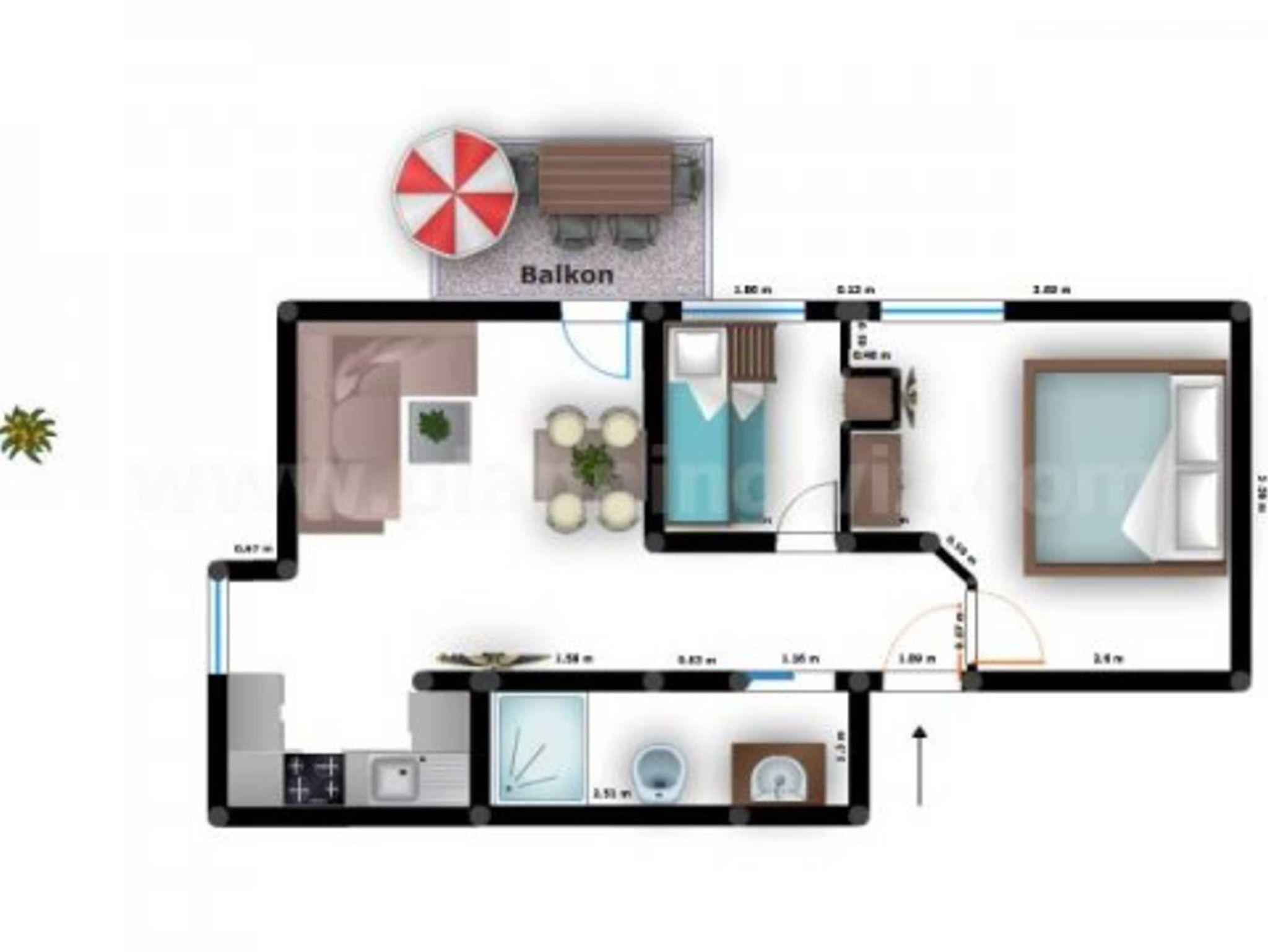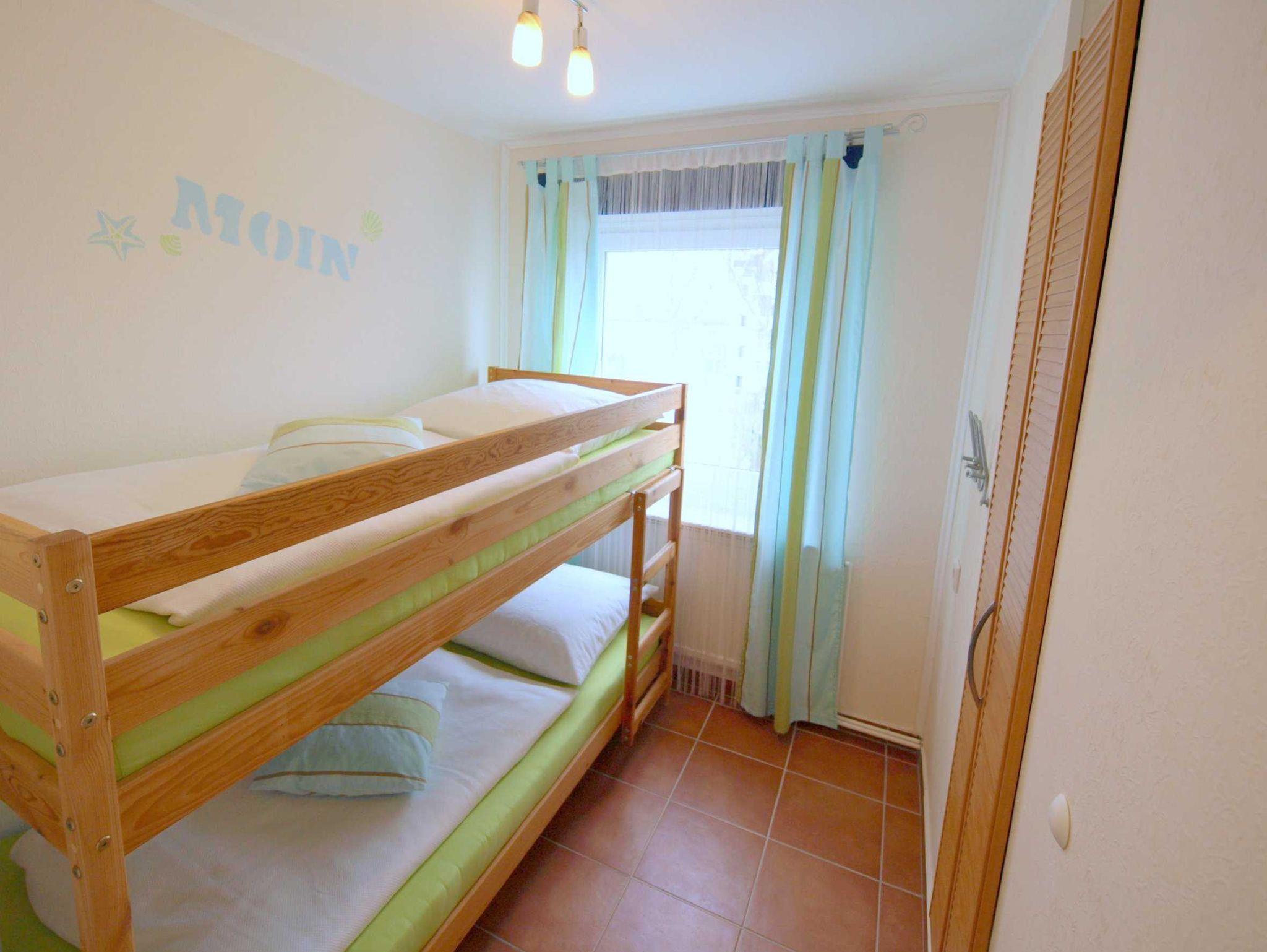 80 Meter Strandentfernung - Ferienwohnung ca. 45 qm für max. 3 Erwachsene und 1 Kind im Dachgeschoss (2. OG) mit Balkon und Meerblick. 2 Schlafzimmer mit zusätzlichem TV im Elternschlafzimmer und DVD Player. Etagenbetten im Kinderschlafzimmer. Wohnzimmer mit offener integrierter Küche, Spülmaschine, Backofen und Kühlschrank mit Gefrierfach und separatem Esstisch, Duschbad. 1 kostenloster PKW-Stellplatz auf dem Grundstück. E-Bike Stellplätze, Nichtraucher. Haustiere nicht erlaubt. WLAN kostenlos.