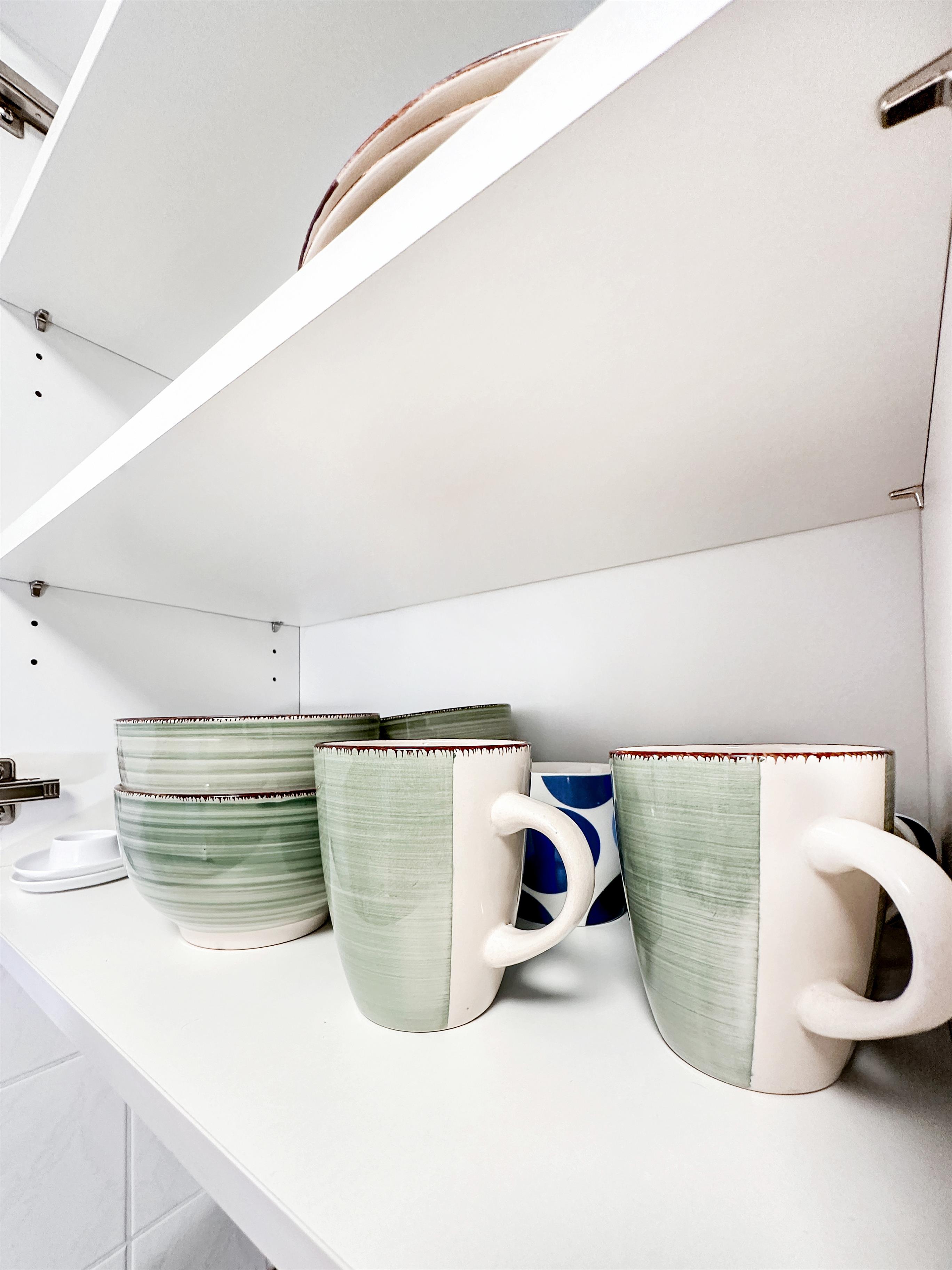 Der Dielenbereich ist ausgestattet mit einer Garderobe und einem 2-türigen Kleiderschrank. Zudem verfügt die gemütliche Ferienwohnung über ein Bad mit Dusche und WC sowie einen möblierten Balkon.