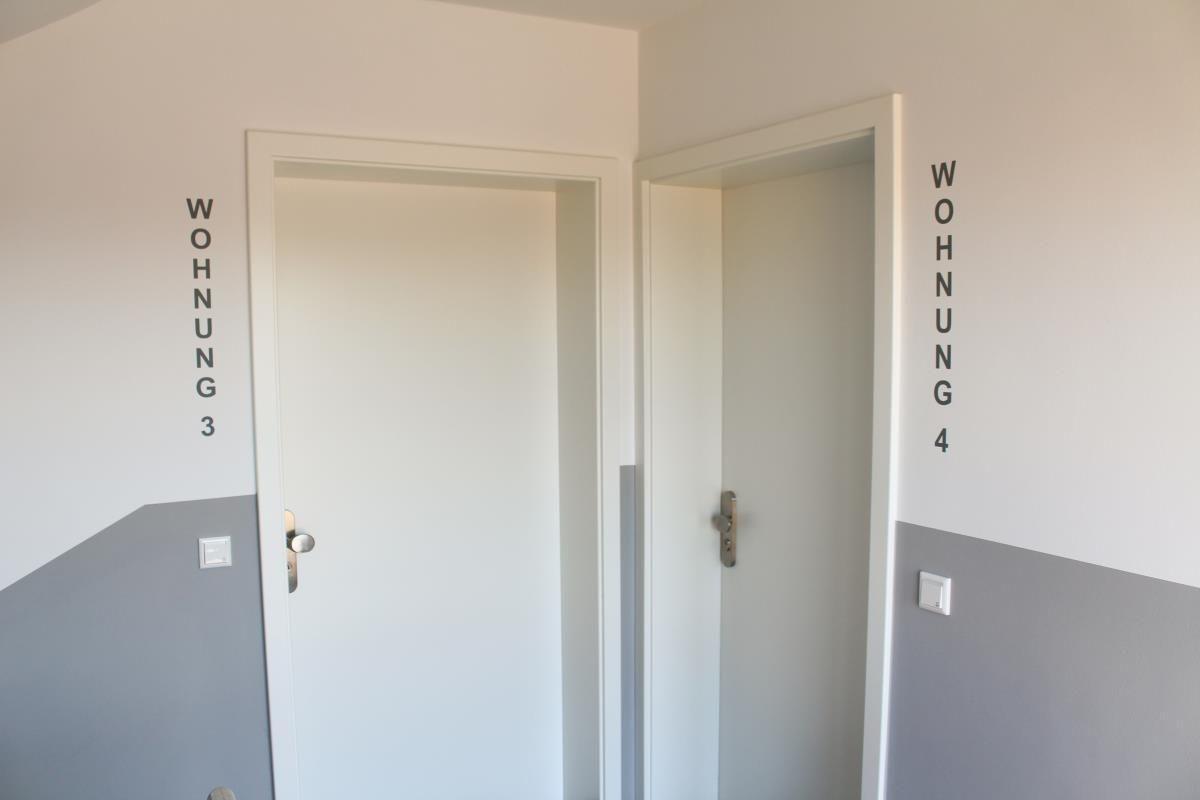 Die Wohnung 3 befindet sich im ersten Obergeschoss zur linken Seite und verfügt über 70 Quadratmeter reine Wohnfläche. Der Wohn- und Essbereich wird durch eine sehr moderne Küchenzeile hervorgehoben. Eine Sitzecke mit Smart TV lädt Sie zum Entspannen ein. Gemeinsame Stunden können in der Essecke an einem Esstisch verbracht werden.