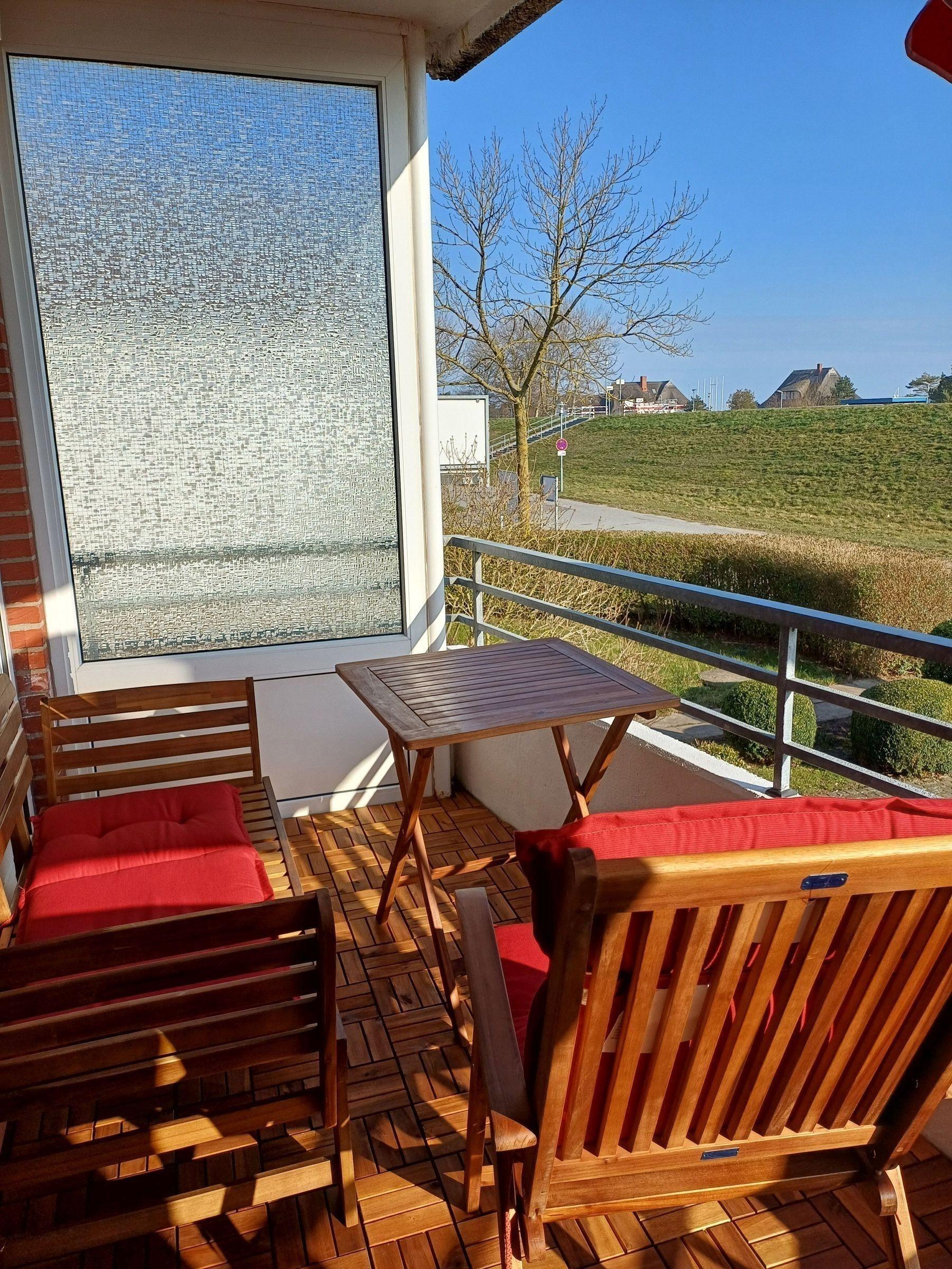 - möblierter Balkon in Süd-, Ostlage mit Blick auf den Deich