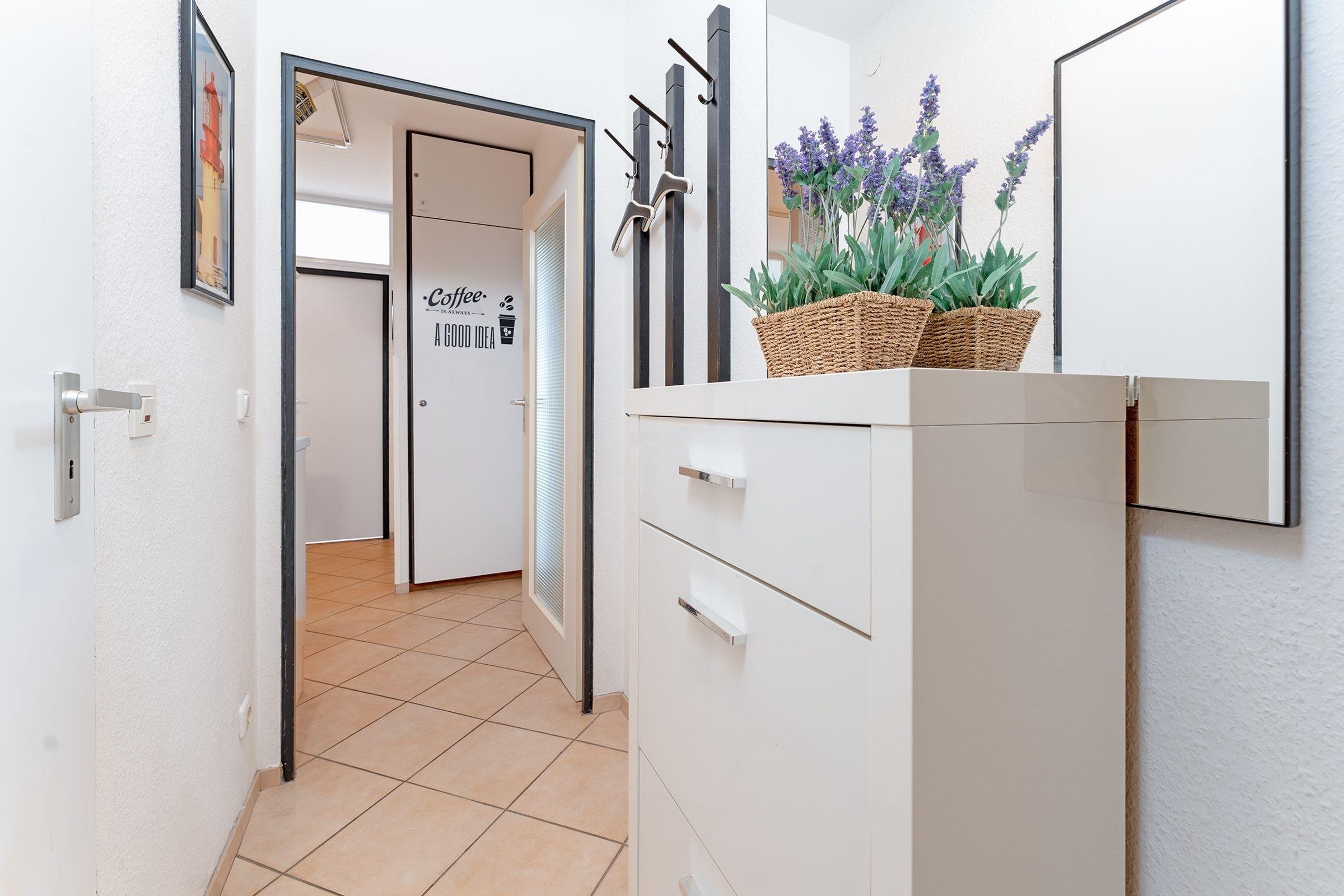 Die Schlüsselübergabe erfolgt über einen Tresor am Kraushaar Ferienwohnungen Servicebüro, Lange Wiese 4, 23747 Dahme.