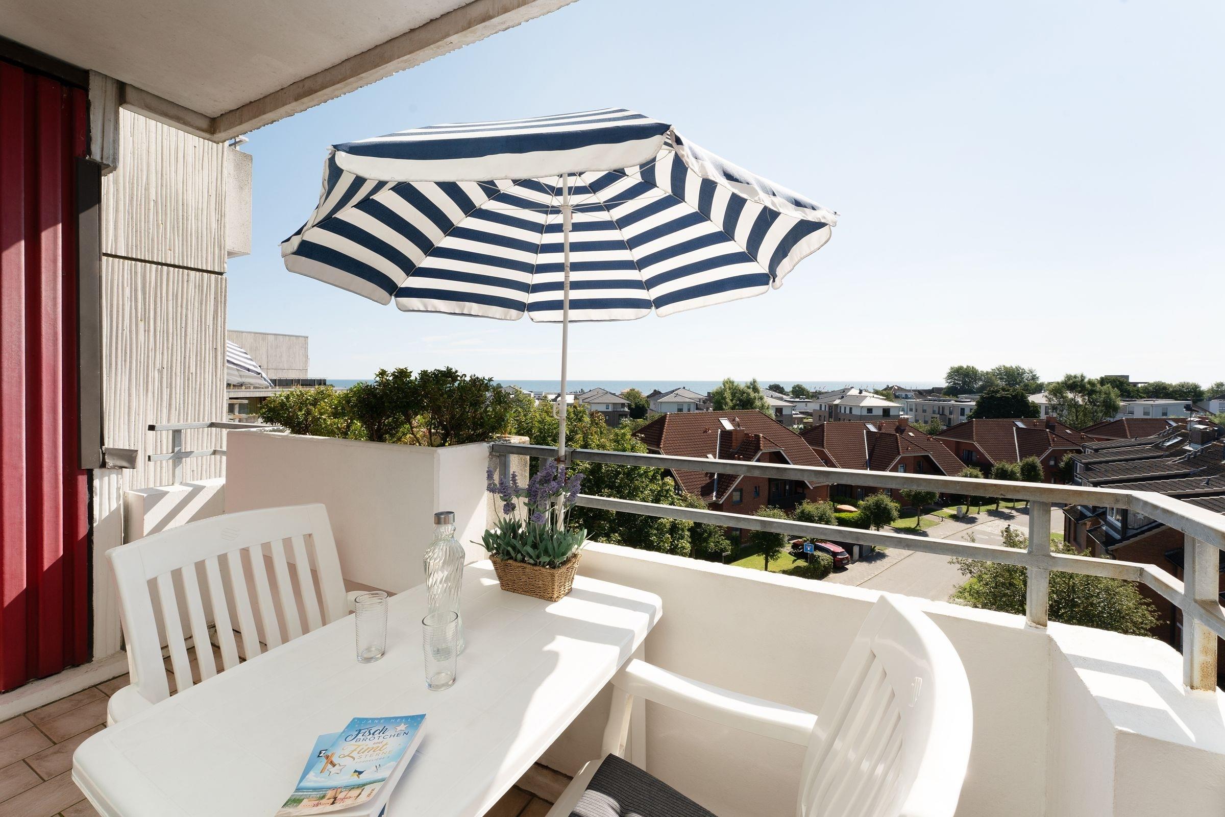 Helle Ferienwohnung mit Balkon und Meerblick in Dahme, ideal für entspannte Ostseeurlaube.