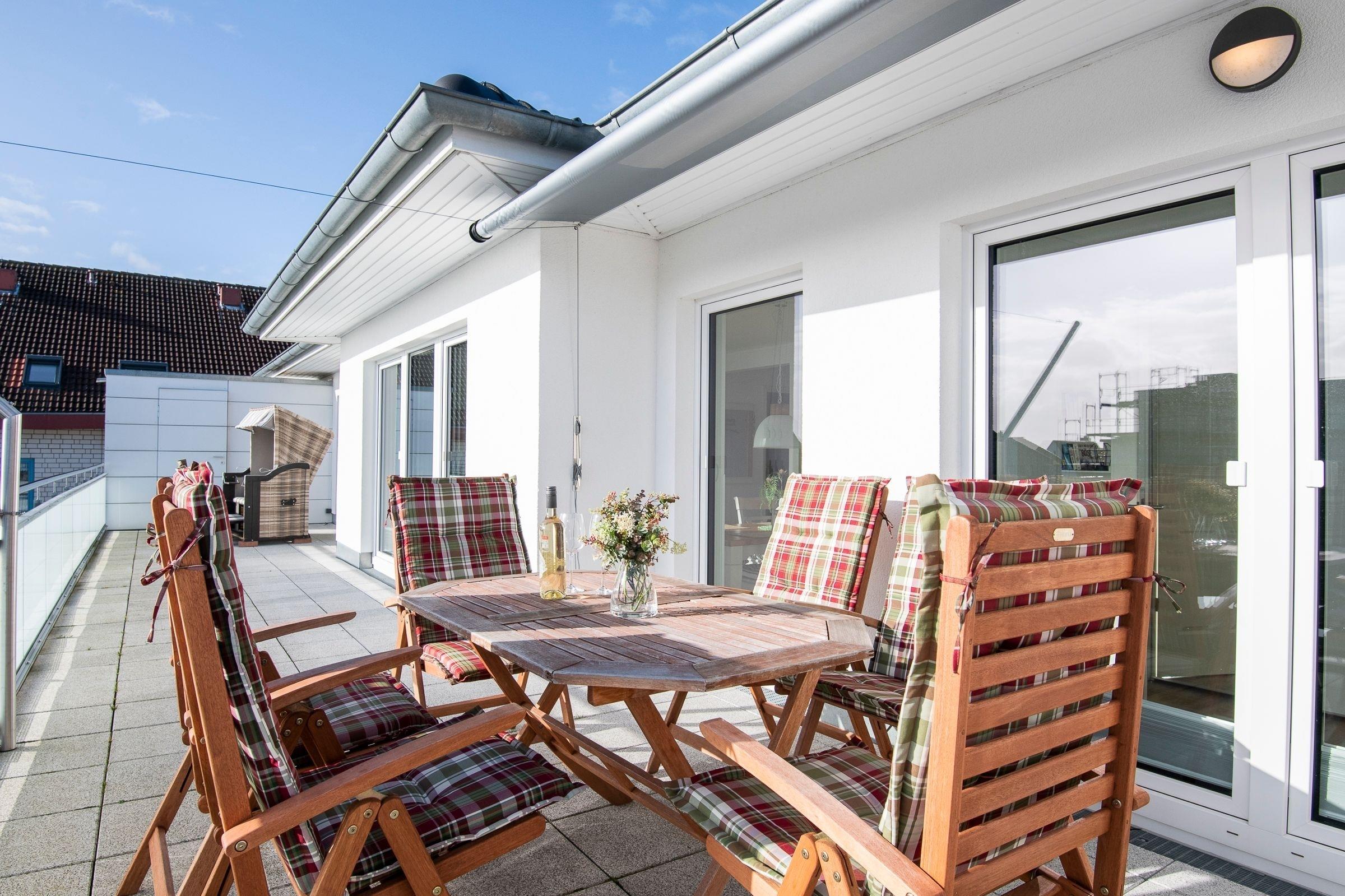 Moderne Ferienwohnung mit Dachterrasse und Strandblick