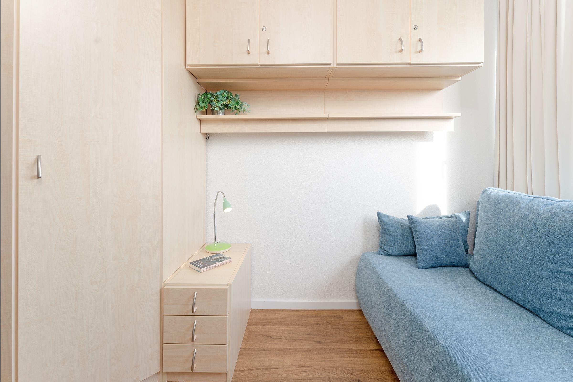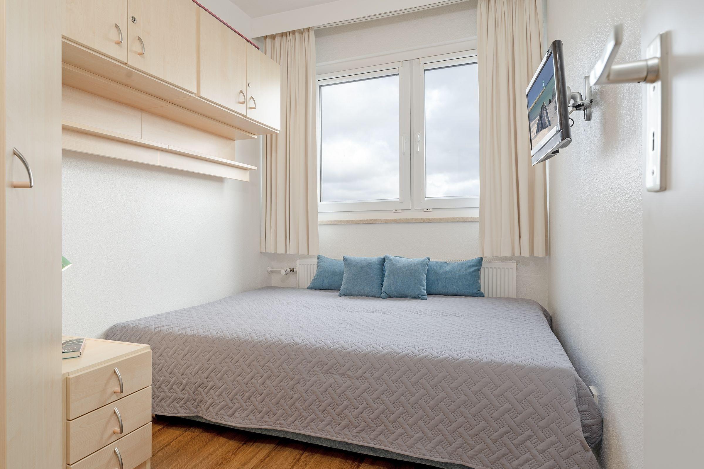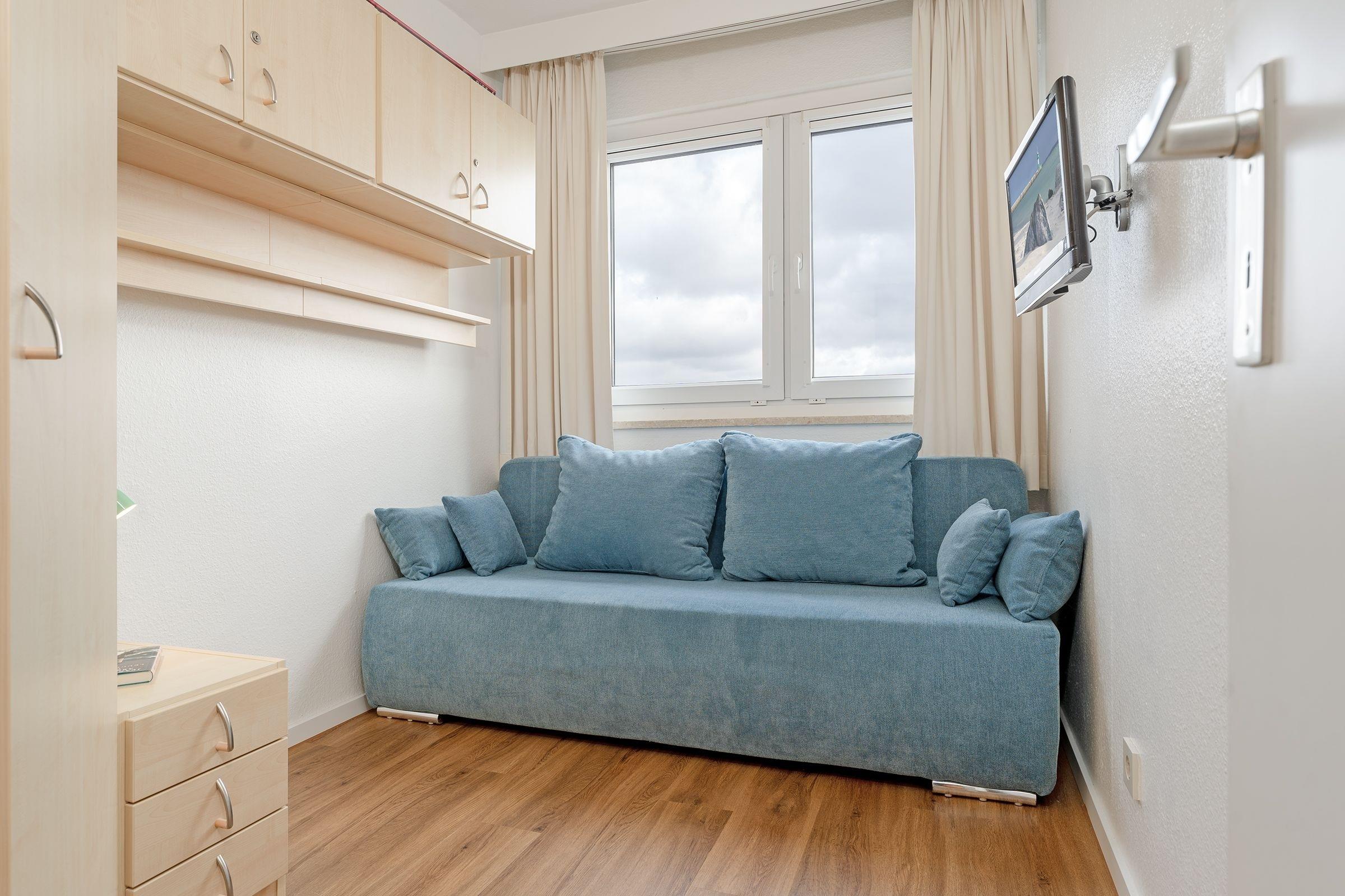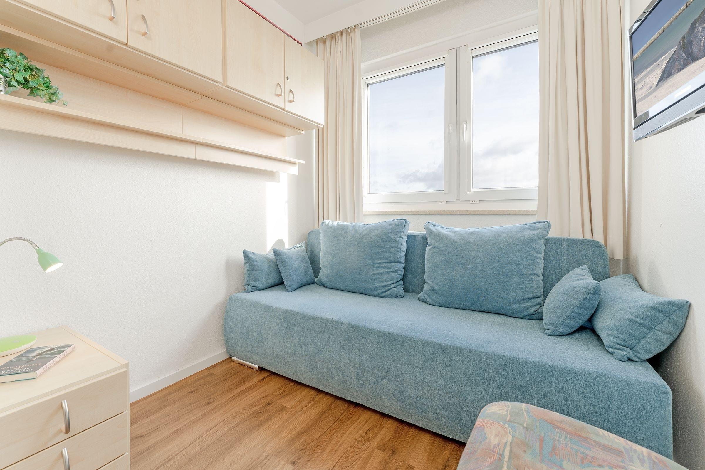 Schlafzimmer: 1 Schlafsofa (ca. 160x200 cm), TV, Verdunkelung (Plissees)