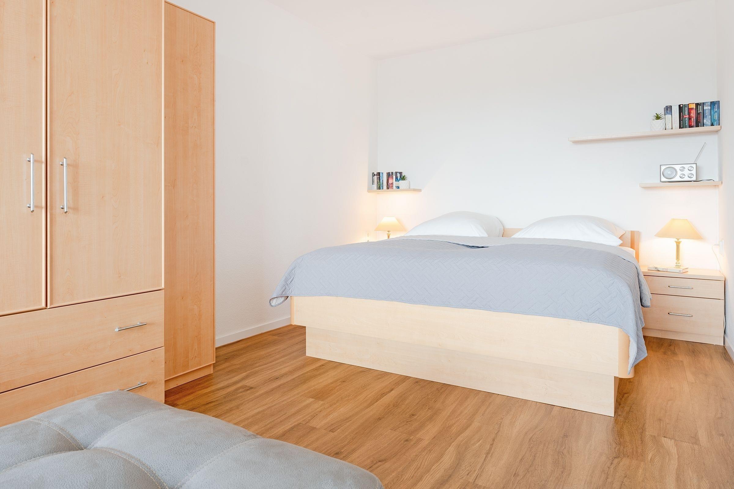 Der kombinierte Wohn- und Schlafraum ist mit einem komfortablen Doppelbett (2x 90x200 cm), einem Kleiderschrank, einem Sofa, einem Sessel sowie einem Fernseher ausgestattet. Im separaten Schlafzimmer ist ein weiterer Fernseher sowie ein Schlafsofa (ca. 160x200 cm) vorhanden. Des Weiteren erwartet Sie eine gut ausgestattete Küche und eine Diele. Ein modernes, hell gefliestes Duschbad ist ebenfalls vorhanden. Der überdachte, möblierte Balkon garantiert Ihnen einen fantastischen Blick auf die Ostsee. Der WLAN-Anschluss ist selbstverständlich inklusive.